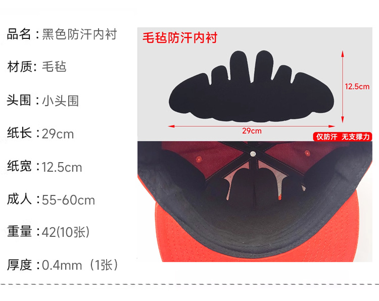 Бейсбольная шляпа, кепка, войлочная внутренняя подкладка для взрослых