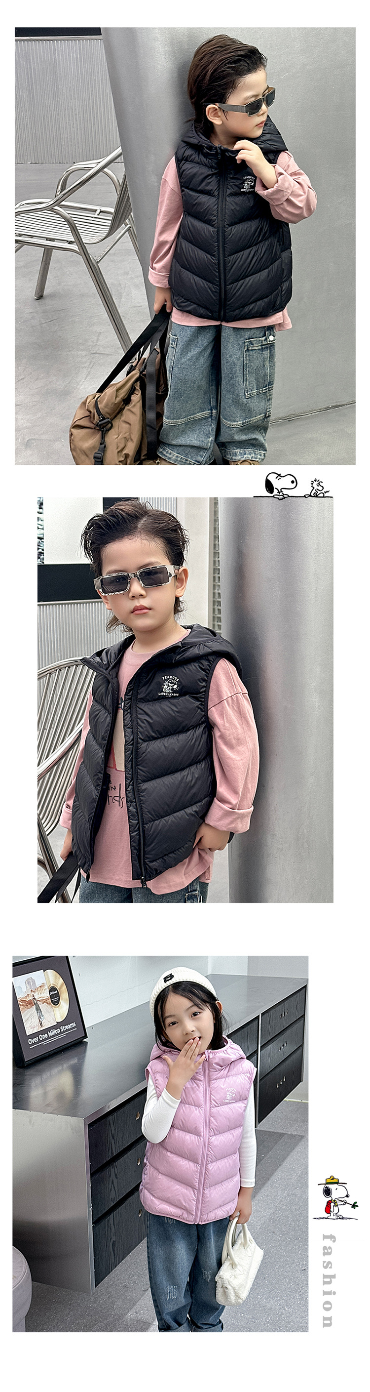 2024 новый стиль Snoopy детский пух с капюшоном жилет куртка супер легкий модный пух плечо