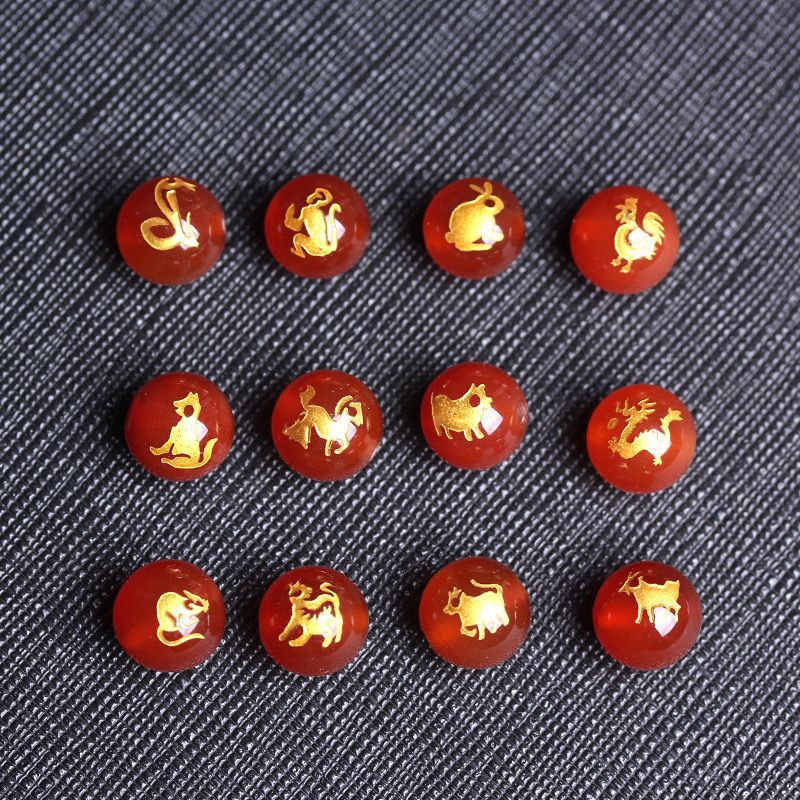 Натуральный красный агат Зодиак Зодиак Зодиак Зодиак Златаные черные агатовые бусы ручной работы