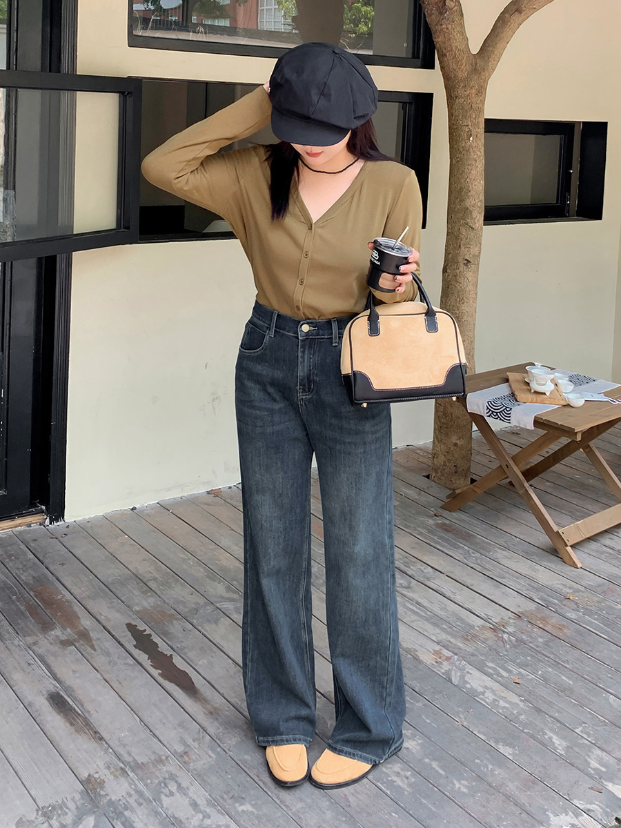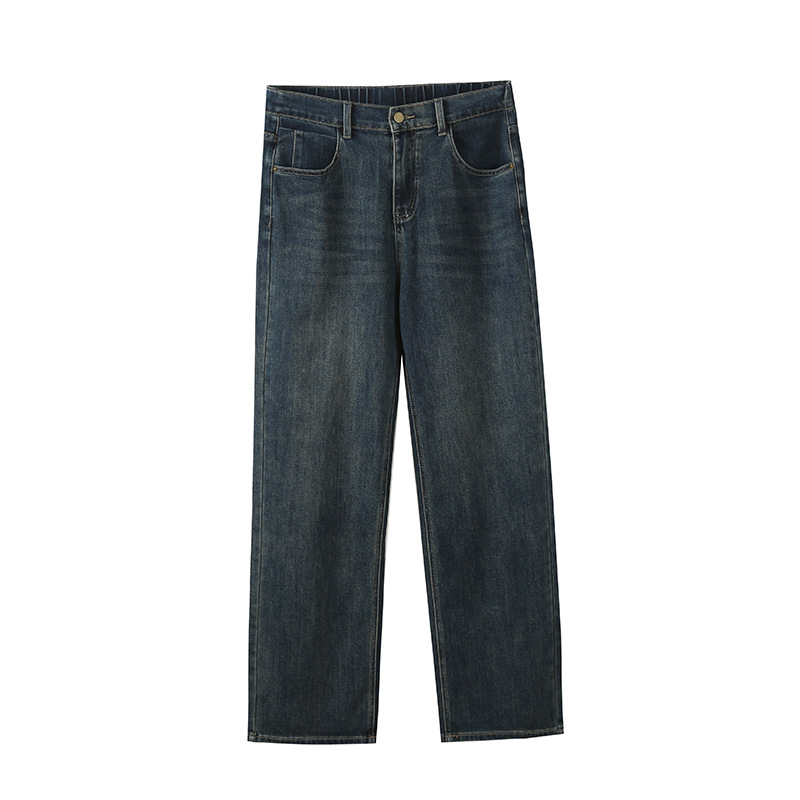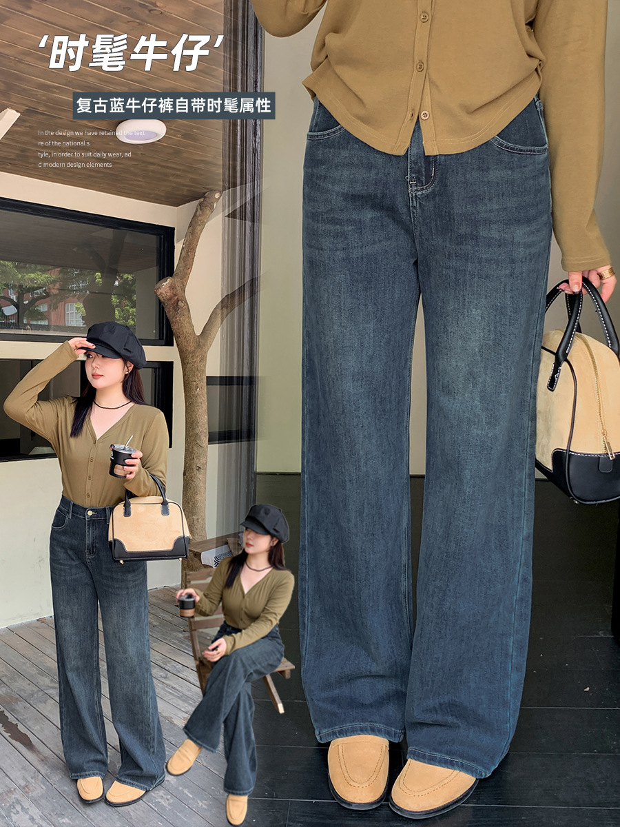 Yino плюс размер женской ретро синие высокие талии широкие джинсы осенние новые свободные тонкие прямые брюки 331663