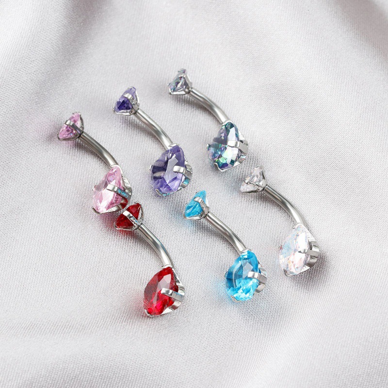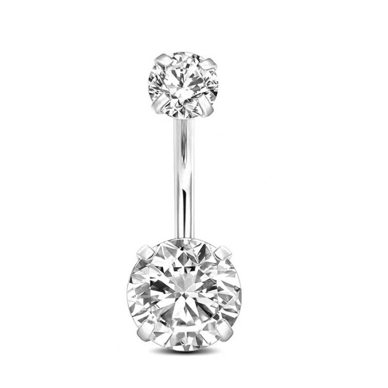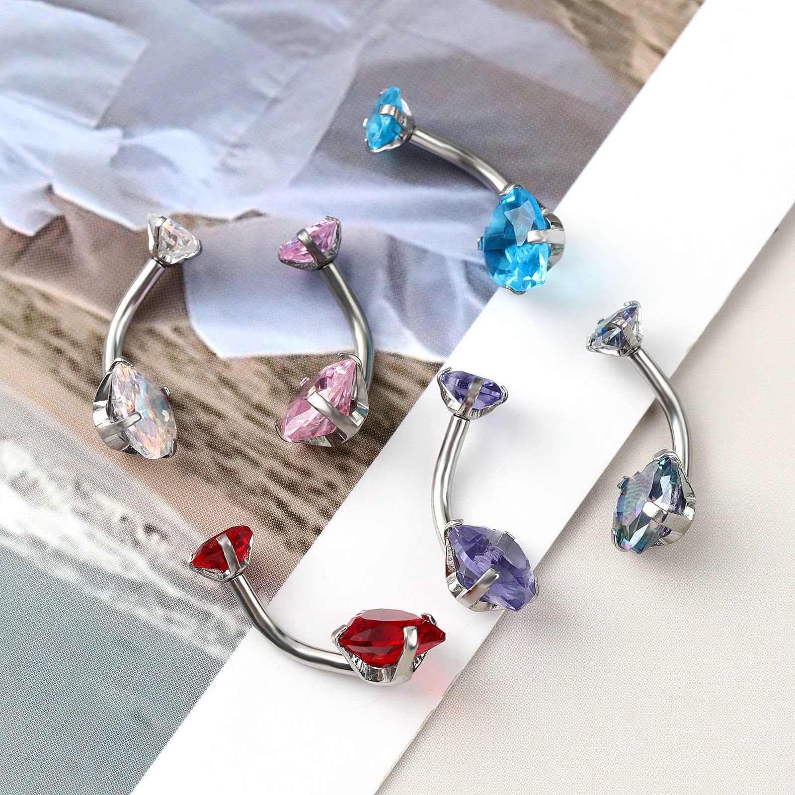 Трансграничные горячие продажи из нержавеющей стали циркон пупочный гвоздь с двумя головками с четырьмя когтями, инкрустированные драгоценными камнями титановая сталь пупок кольцо пирсинг ювелирные изделия