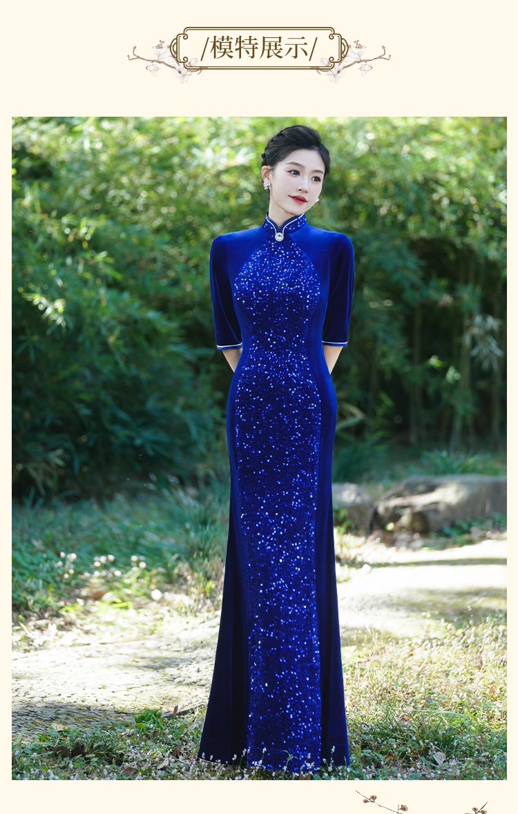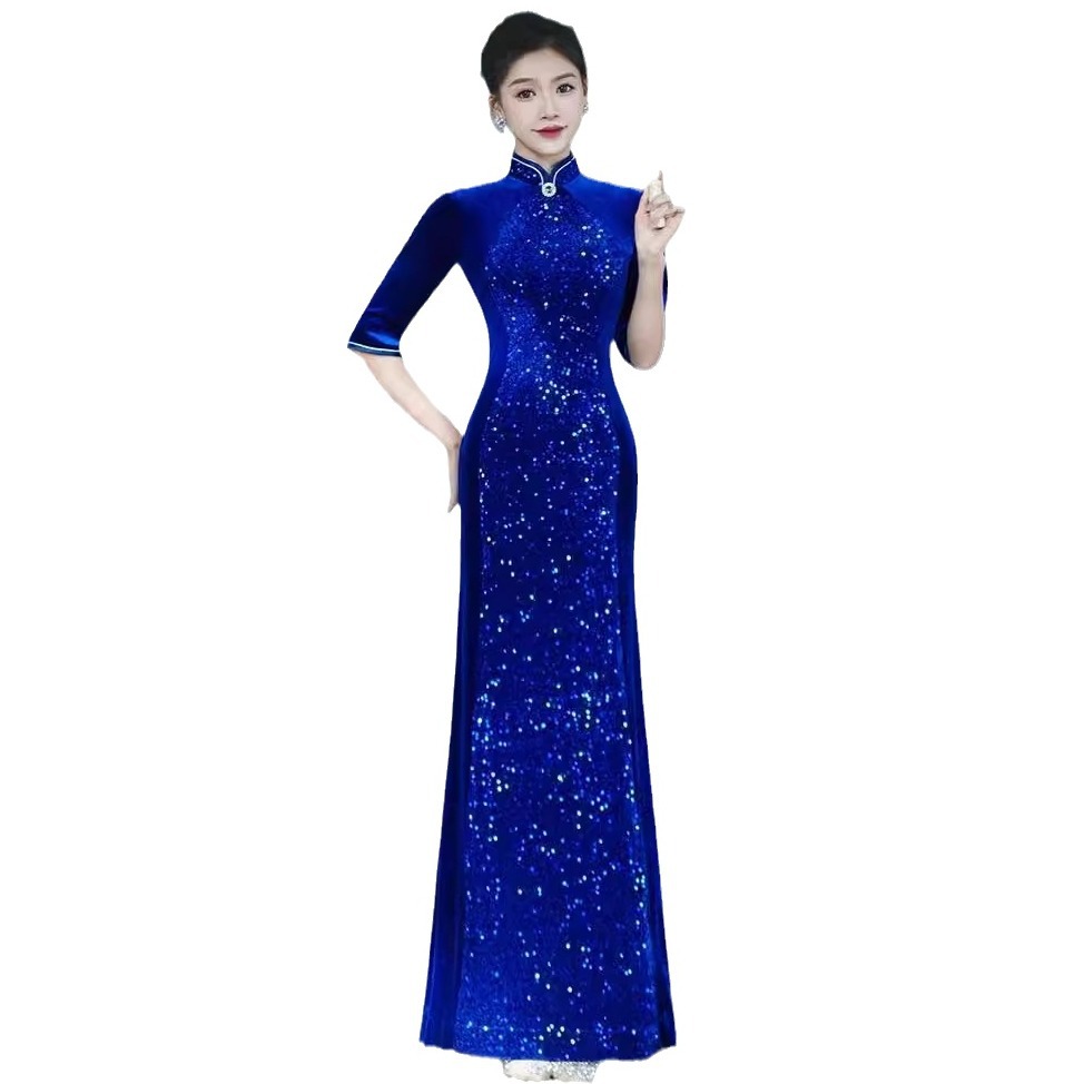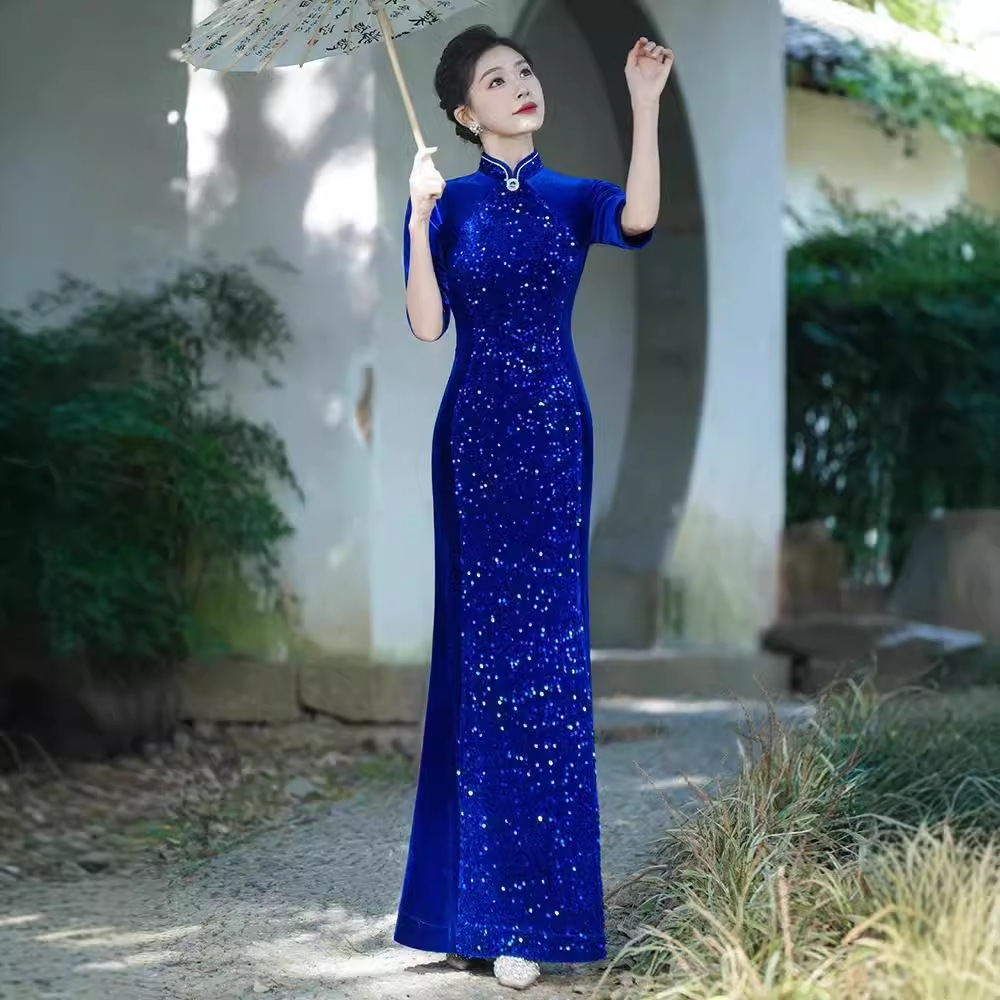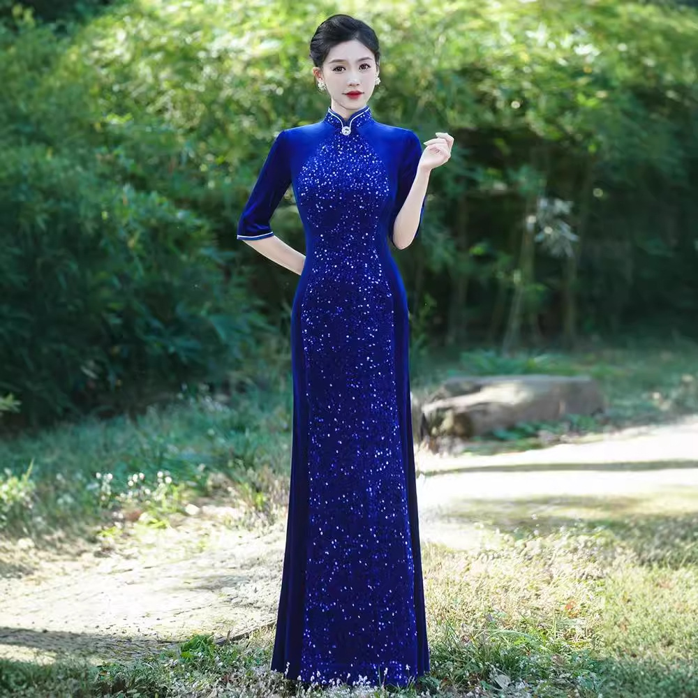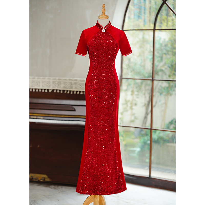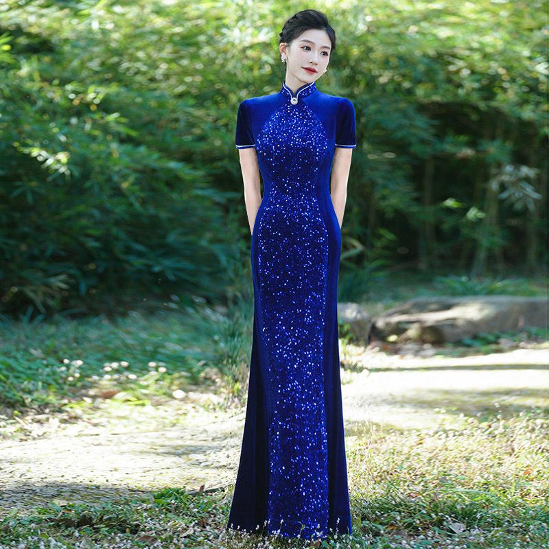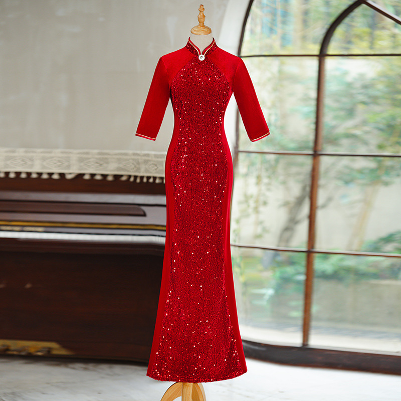 Платье-русалка с пайетками для подиума, чеонсам 2025, новое ретро, свадебное банкетное, улучшенное, плюс сайз, костюм для выступления