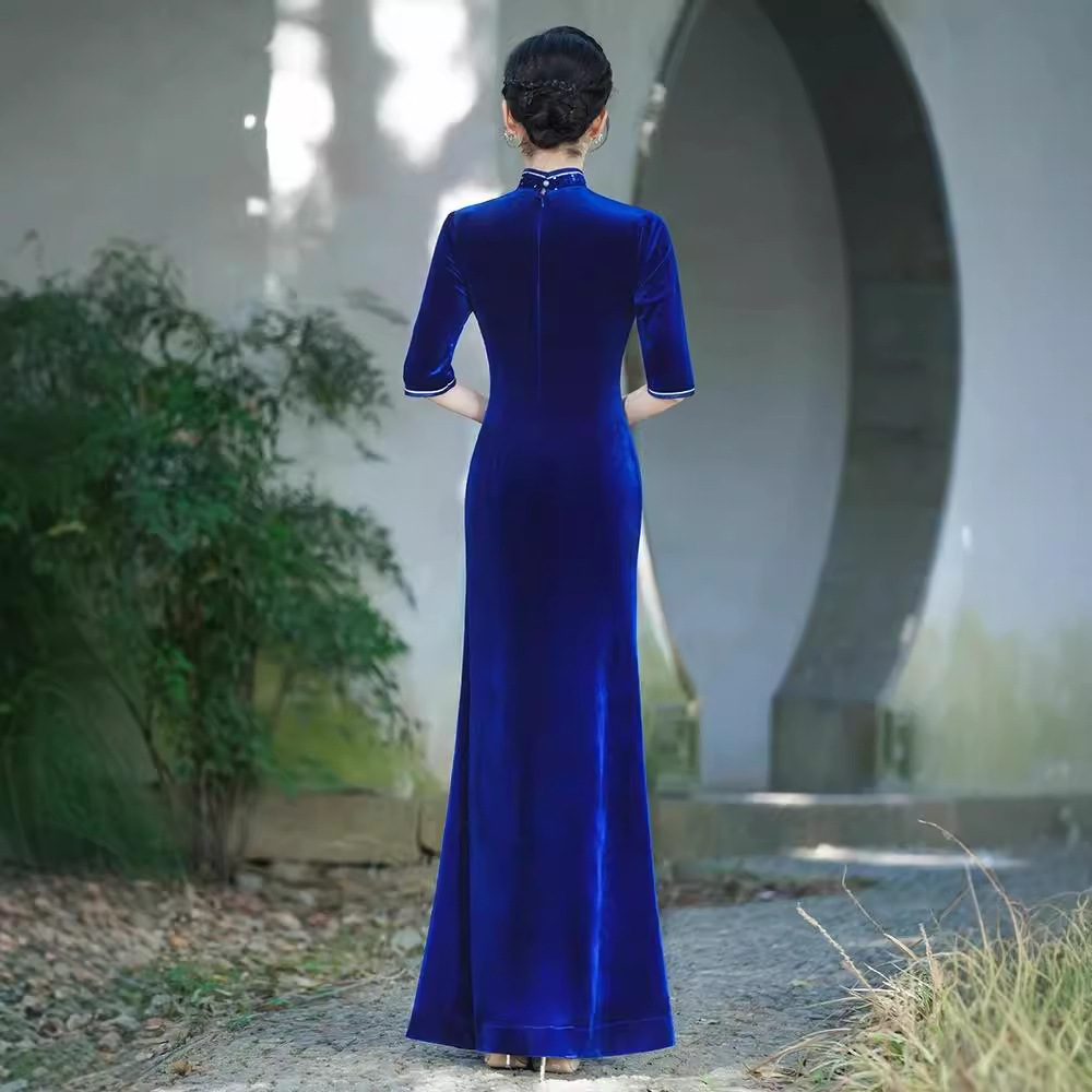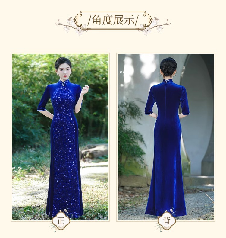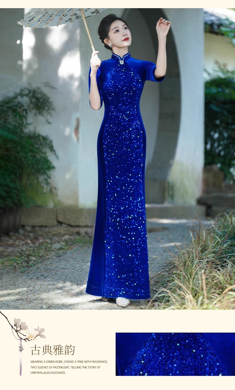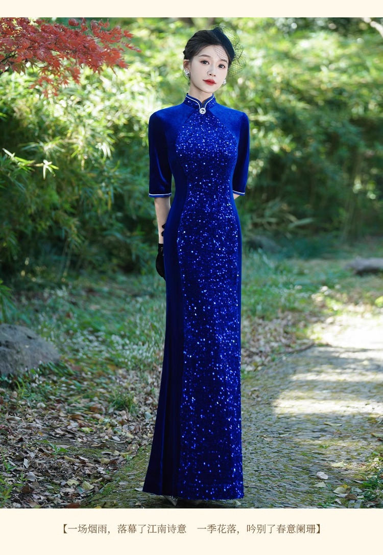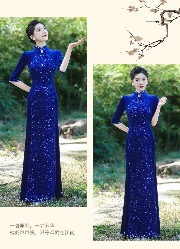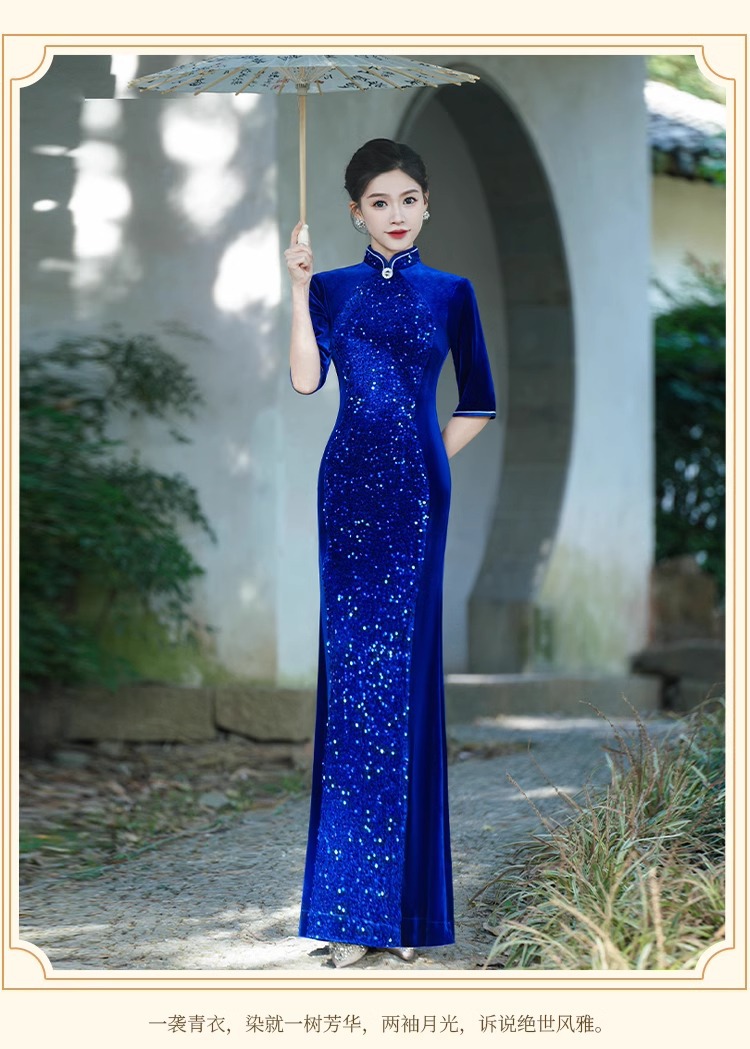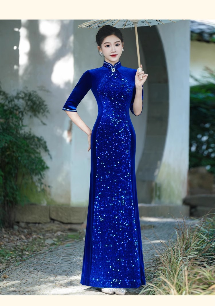 Платье-русалка с пайетками для подиума, чеонсам 2025, новое ретро, свадебное банкетное, улучшенное, плюс сайз, костюм для выступления