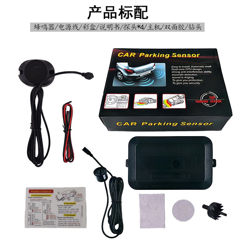 开关汽车倒车探头蜂鸣器滴滴声全套倒车雷达月牙屏4探头倒车雷达