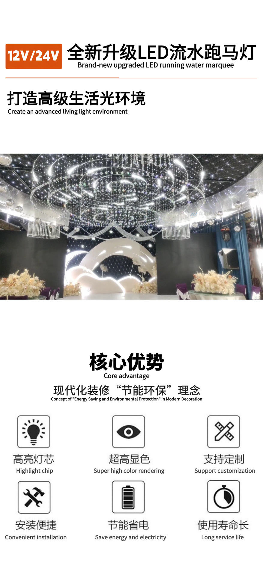 Светодиодная лента 12В/24В с низким напряжением, сверхъяркая, для гостиниц и свадеб, водонепроницаемая, с эффектом «бегущей воды»