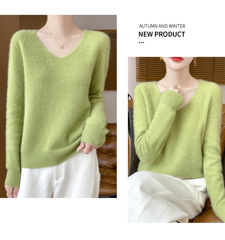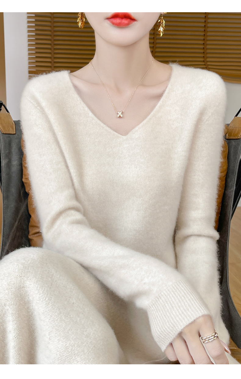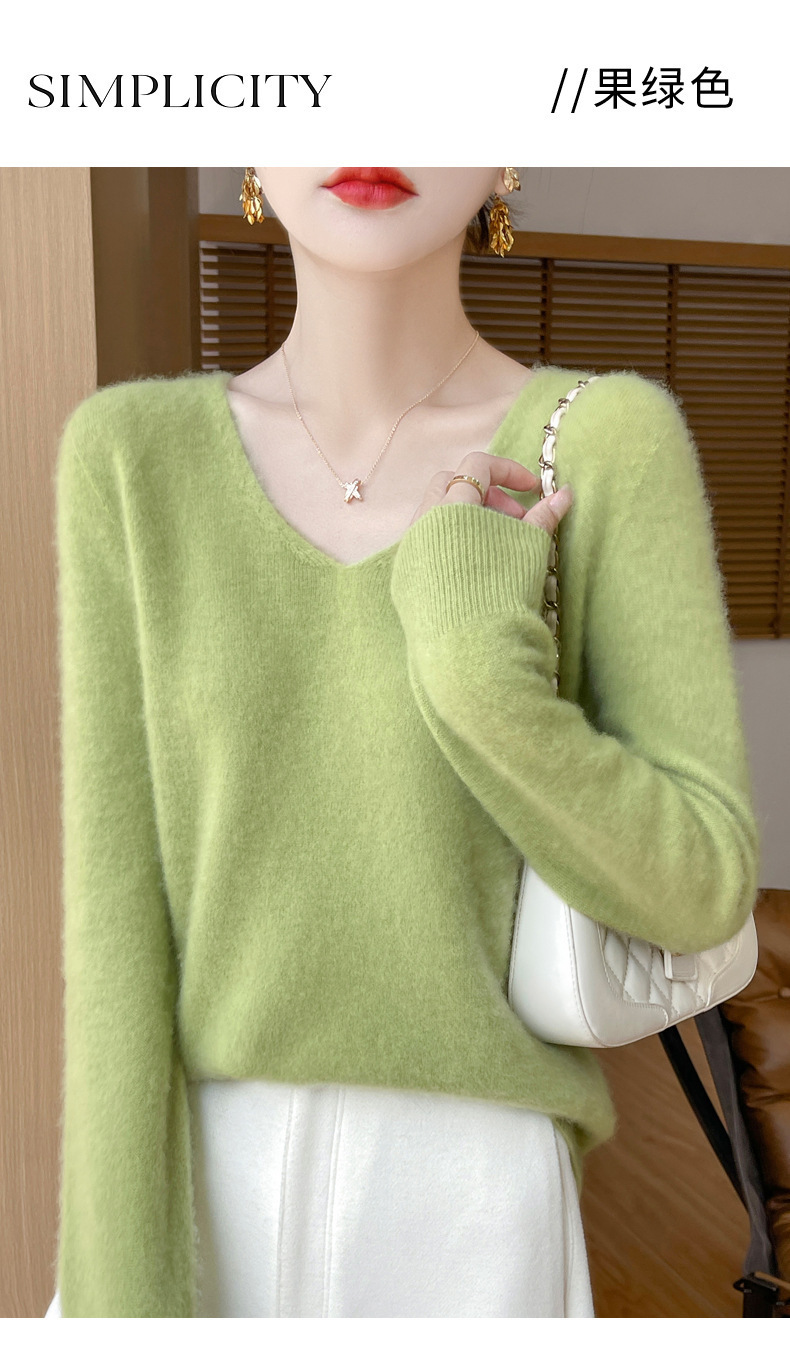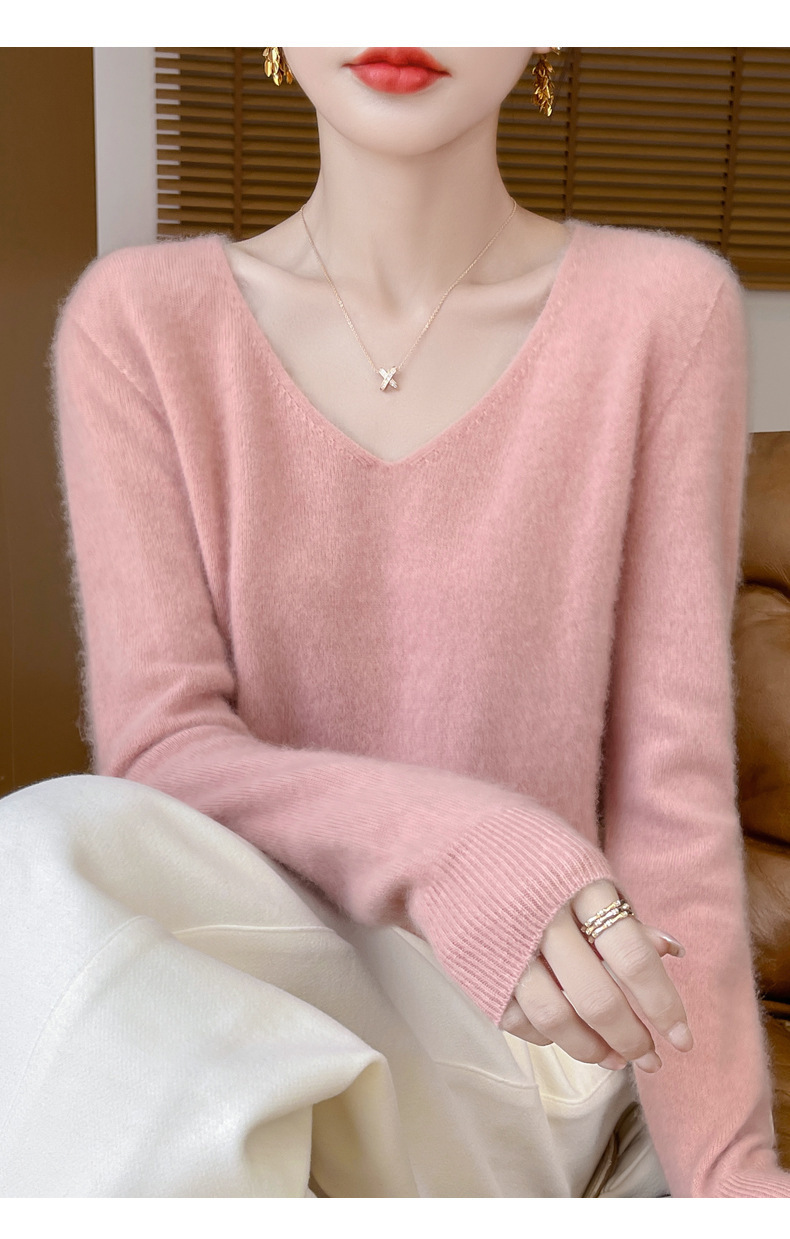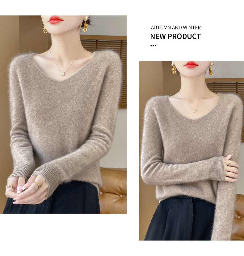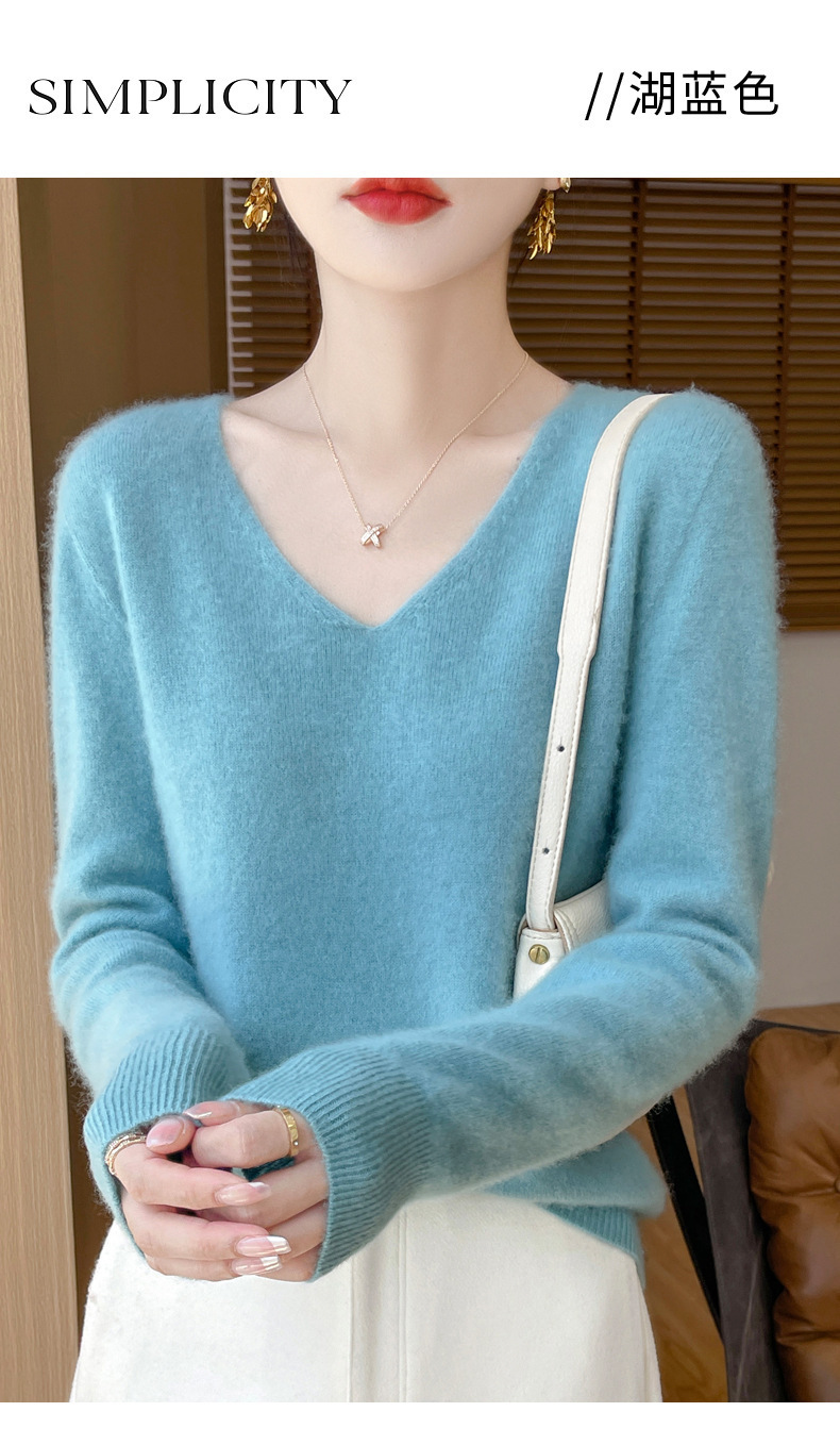Оптовая продажа женских шерстяных свитеров из 100% шерсти, первоклассное изделие, V-образный вырез, мягкая трикотажная верхняя одежда, утягивающая базовая рубашка для верхнего слоя.