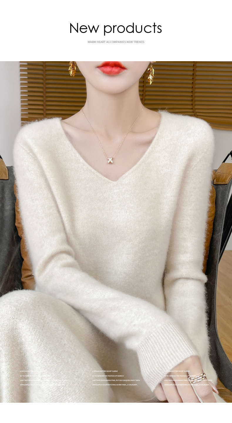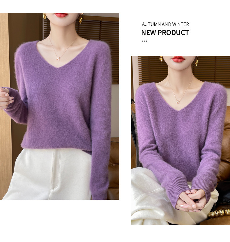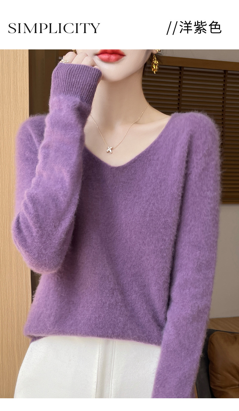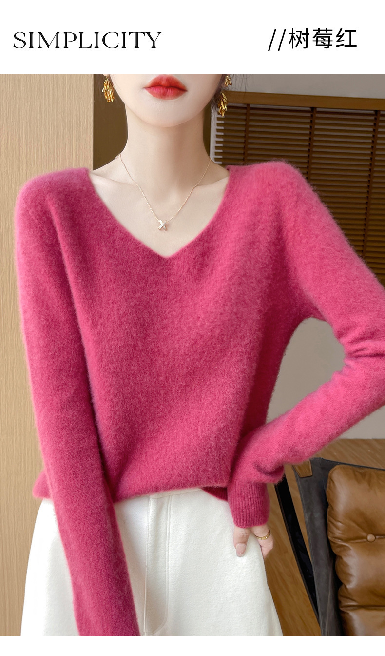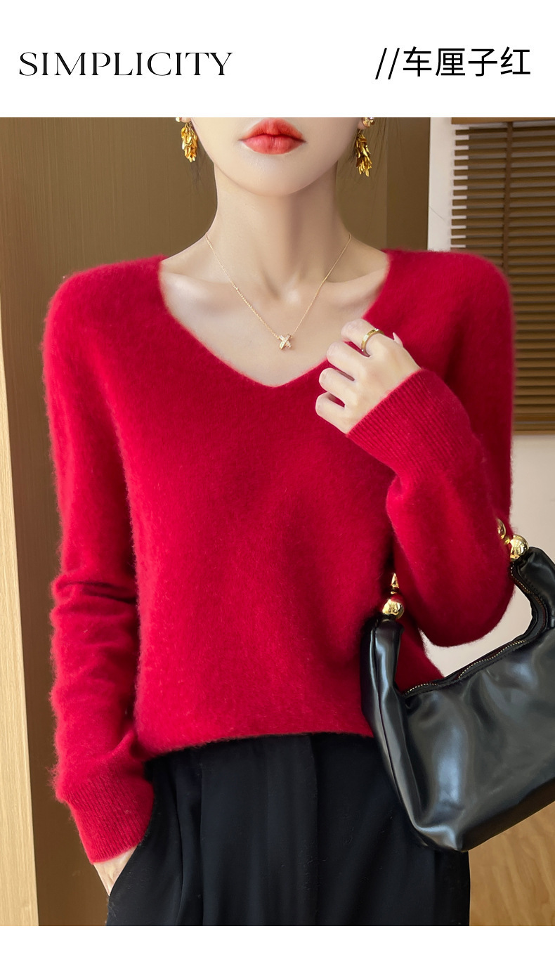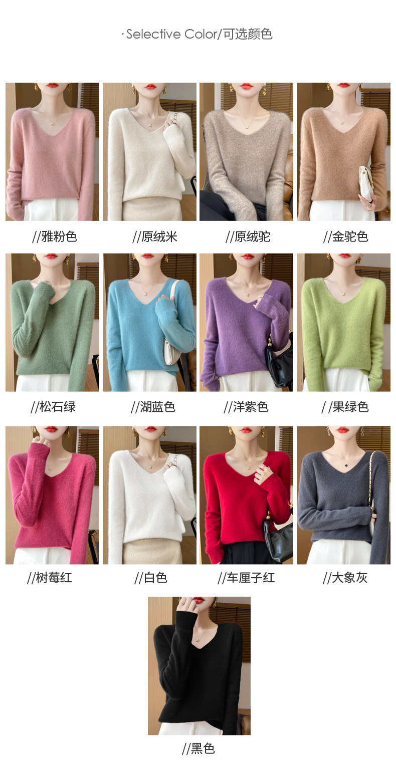 Оптовая продажа женских шерстяных свитеров из 100% шерсти, первоклассное изделие, V-образный вырез, мягкая трикотажная верхняя одежда, утягивающая базовая рубашка для верхнего слоя.
