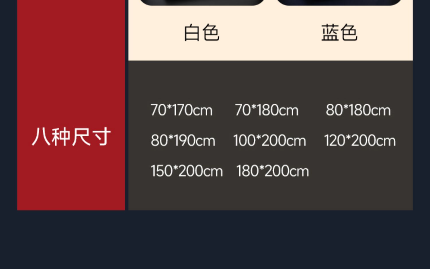 70*170 см [без отверстий]; 80*180 см [без отверстий]; 100*200 см [без отверстий]; 120*200 см [без отверстий]; 150*200 [без отверстий]; 70*180 см [с отверстиями]; 100*200 см [с отверстиями]; 120*200 см [с отверстиями]; 80*190 см [с отверстиями]