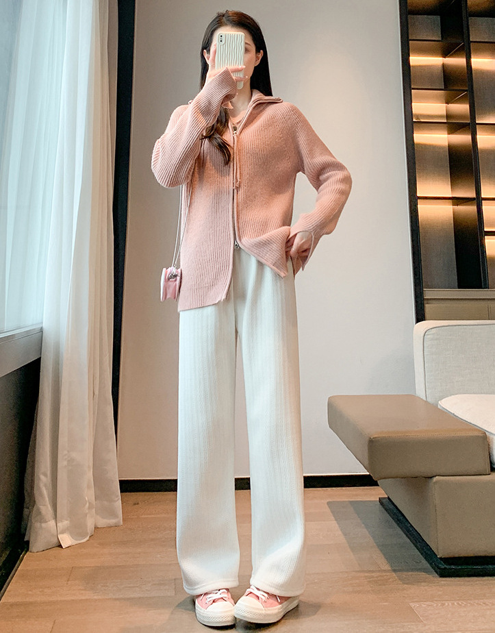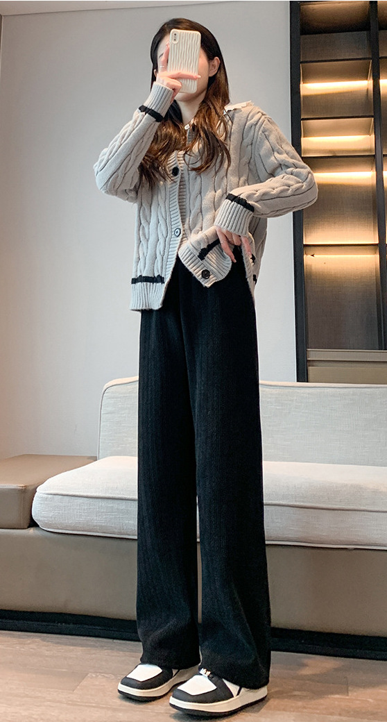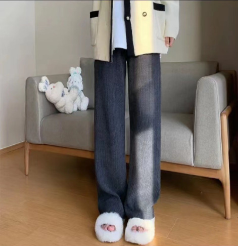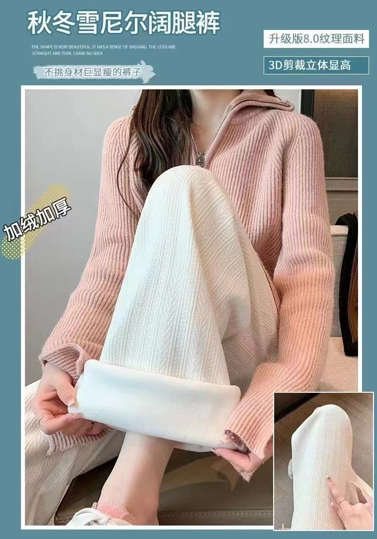 Широкие брюки из синели на осень-зиму 2022 года, с высокой талией, драпированные, универсальные, прямые, стройнящие, трикотажные, в пол, тонкие, широкие, стройнящие брюки.