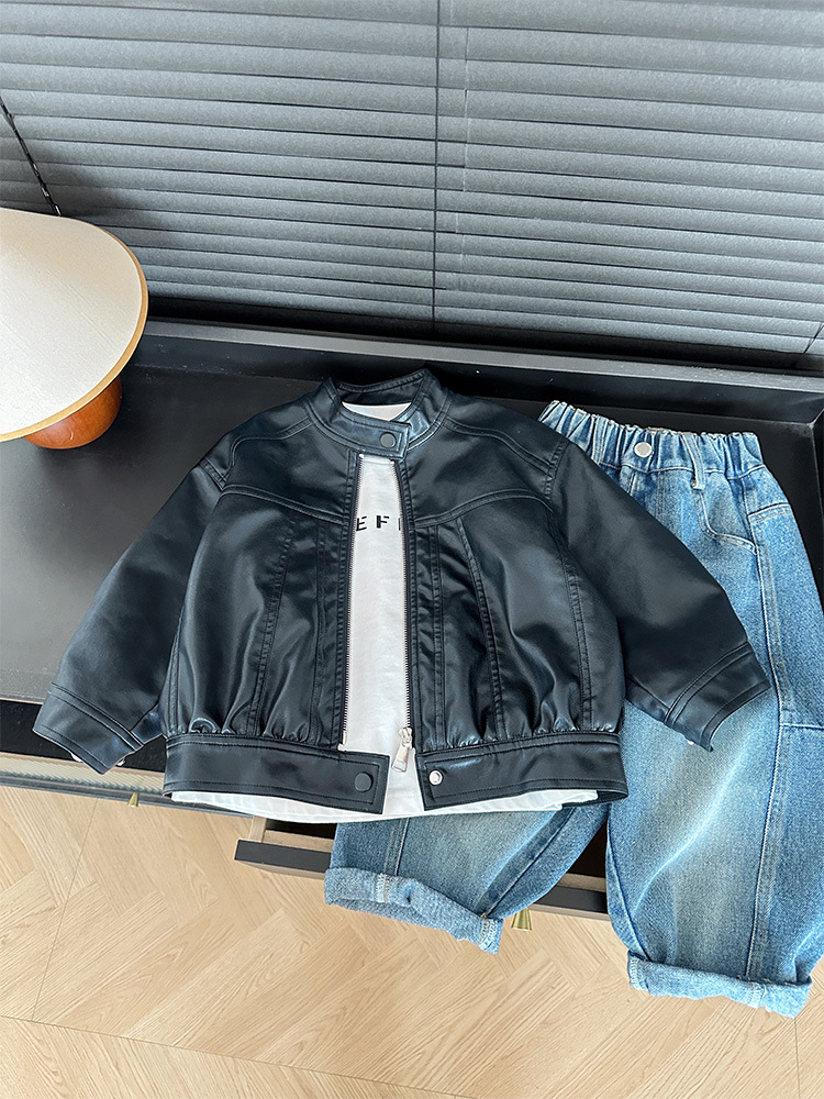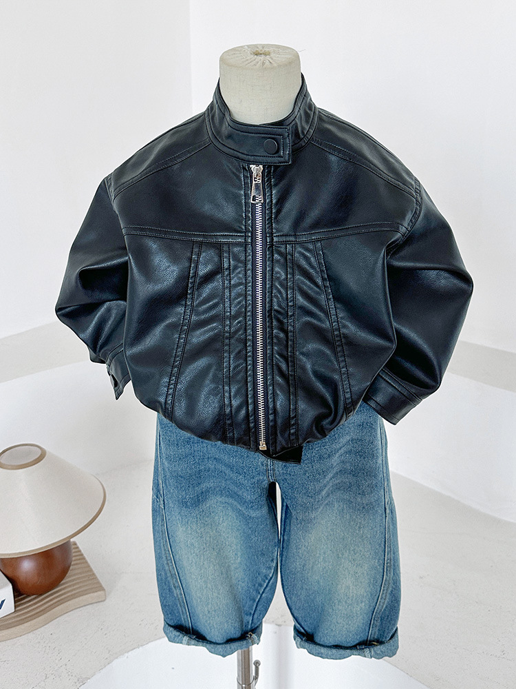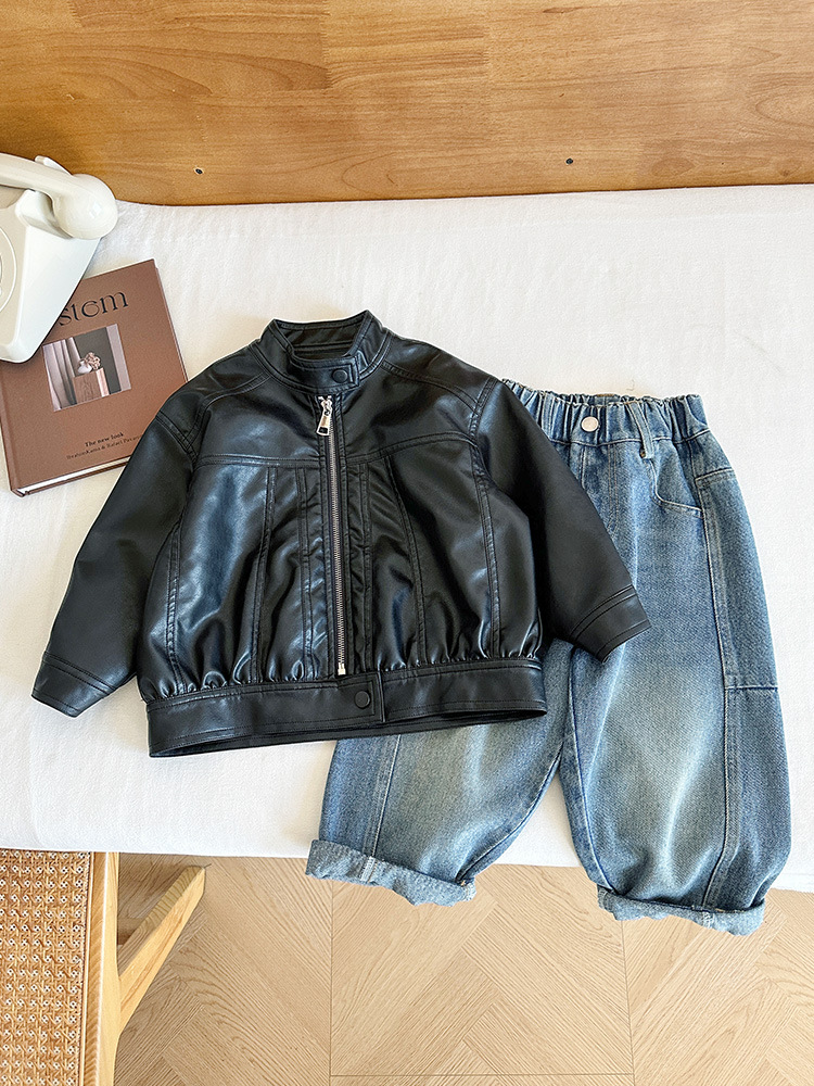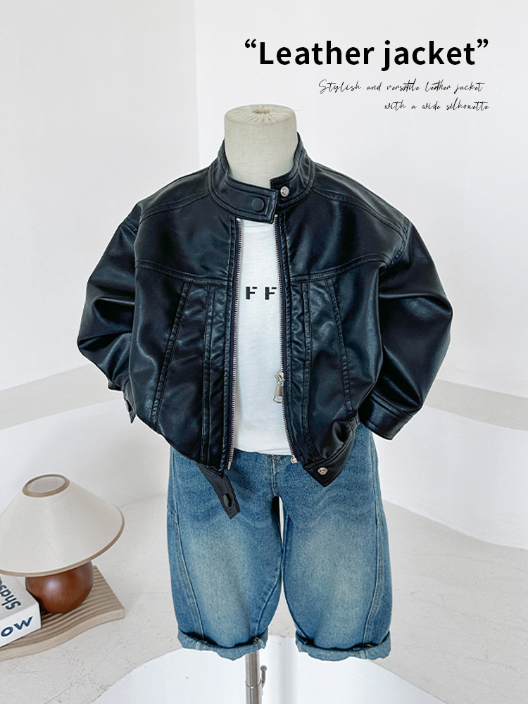 Wind Valley 2024 осень новая детская одежда для детей ретро дикий воротник куртка для мужчин и женщин красивая кожаная куртка