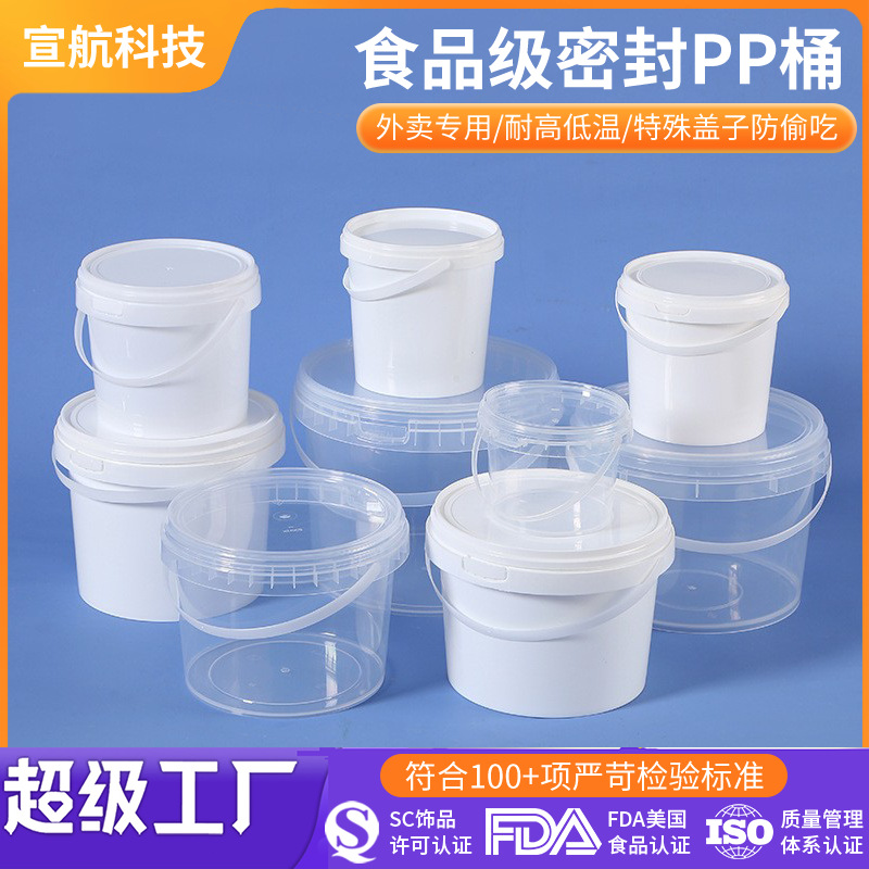 Пластиковое ведро для хранения пищевых продуктов из полипропилена, герметичное, круглое, объемом 0,15-5 л, прозрачное, с крышкой, портативное, с отрывной крышкой, бутылка-контейнер.