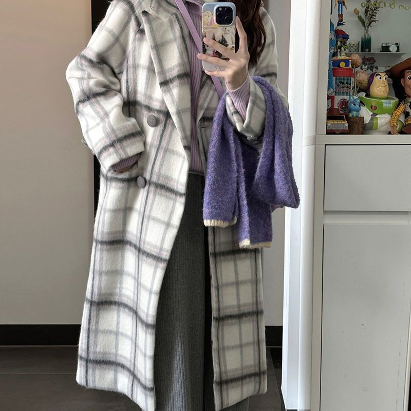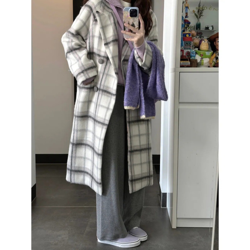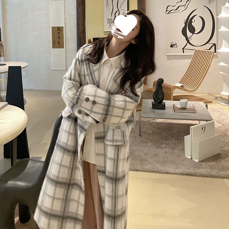 Легкий и экстравагантный новый клетчатый плащ серый тысяча птиц длинное пальто