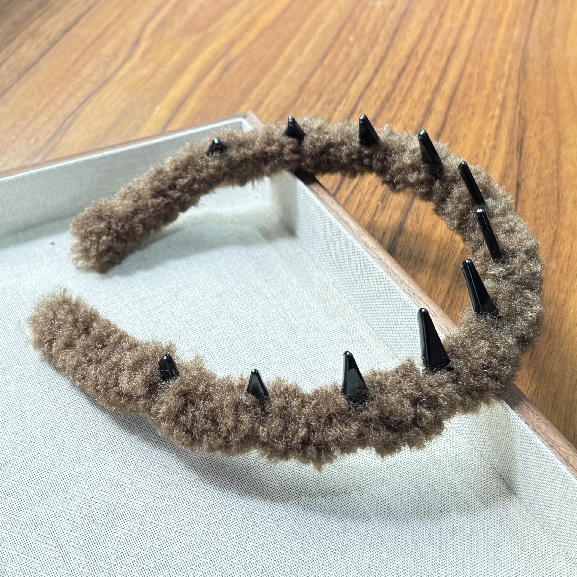 Янтарная повязка на голову с леопардовым принтом и зубами тигра; Повязка на голову с серым леопардовым принтом и зубами тигра; Повязка на голову с зубами черного тигра; Повязка на голову с зубами тигра черного кофе; Прозрачная повязка на голову с тигровыми зубами; Светло-голубая прозрачная повязка на голову с тигровыми зубами; Светло-розовая полупрозрачная повязка на голову с тигровыми зубами; Светло-фиолетовый прозрачный ободок с тигровыми зубьями; Полупрозрачная повязка на голову с тигровыми зубами цвета шампанского; Ободок с тигровыми зубьями однотонного зеленого цвета; Ободок с тигровыми зубьями, однотонный, лазурно-голубой; Белоснежная однотонная повязка на голову с тигровыми зубами; Светло-розовая однотонная повязка на голову с тигровыми зубами; Светло-фиолетовый однотонный ободок с тигровыми зубьями; Зеленая текстурированная повязка на голову с тигровыми зубами; Оранжевая текстурированная повязка на голову с тигровыми зубами; Белая текстурированная повязка на голову с тигровыми зубами; Ободок с текстурой «тигровый зуб» цвета шампанского; Ободок с тигровыми зубами цвета шампанского; Матовая черная треугольная повязка на голову; Яркая черная треугольная повязка на голову; Янтарная треугольная повязка на голову; Повязка на голову из овечьей шерсти цвета хаки; Темно-коричневая повязка на голову из овечьего велюра; Повязка на голову из фиолетового овечьего волоса; Повязка на голову из овечьей шерсти - красная; Повязка на голову из флиса «Синяя овечка»; Янтарный ободок с леопардовым принтом в форме буквы U; Серая повязка на голову U-образной формы с леопардовым принтом; Черная глянцевая повязка на голову U-образной формы.; Повязка на голову с тонкими зубьями «Тигровый зуб» — серый леопардовый принт; Повязка на голову с тонкими зубьями в виде тигрячьих зубов и янтарным леопардовым принтом; Ободок с тонкими зубцами "Тигровый зуб" - Глянцевый черный; Повязка на голову с темным леопардовым принтом; Легкая повязка на голову с леопардовым принтом; Черная матовая зубчатая повязка на голову; Повязка на голову с зубами черного тигра (без аэрозольной краски); Оранжевая повязка на голову с зубцами (неокрашенная); Повязка на голову с черными зубьями (неокрашенная); Темно-синяя повязка на голову с зубцами (неокрашенная); Повязка на голову с розовыми зубцами (неокрашенная); Белая повязка на голову с зубцами (неокрашенная)