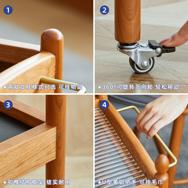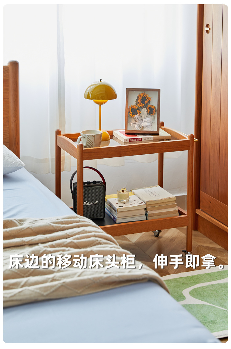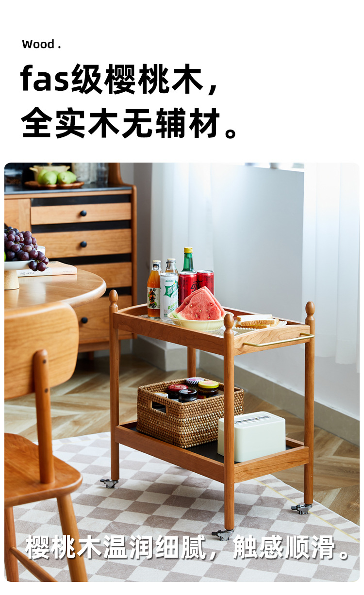Съемная деревянная сторона вишневого дерева маленькая тележка скандинавский крем ветер гостиная столовая балкон угол