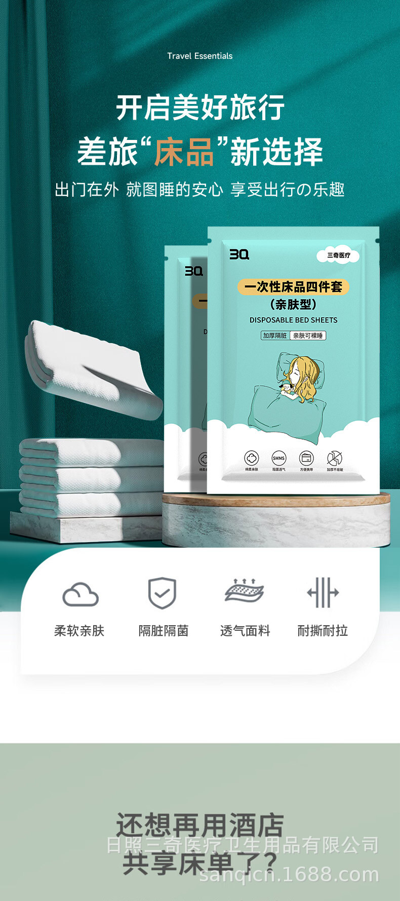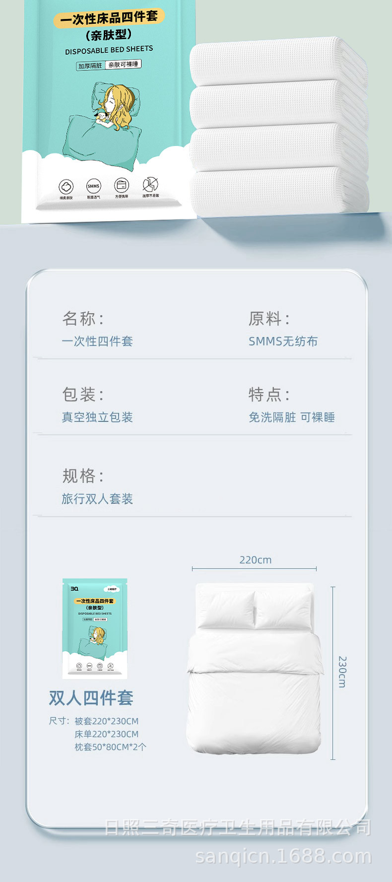 Sanqi одноразовые поездки для деловых поездок Независимая упаковка из четырех частей smms ткани одноразовая стирка