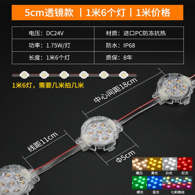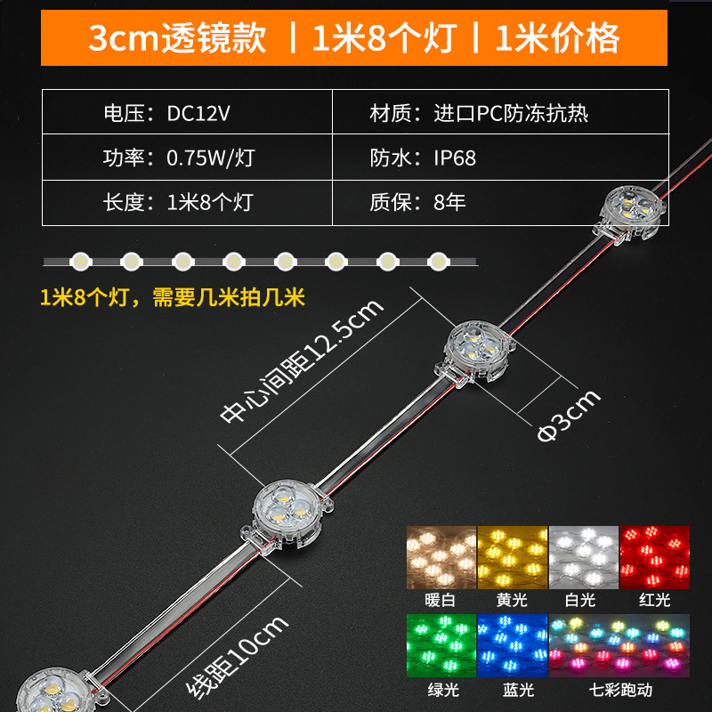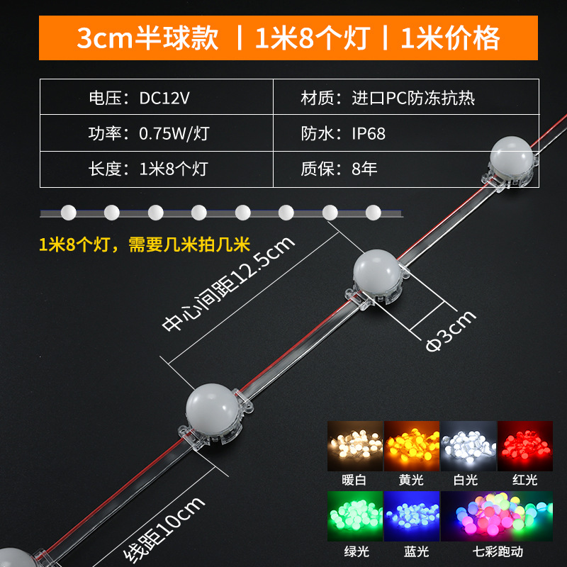 Точечный источник света для наружного освещения, светодиодный водонепроницаемый светильник с 5cm перфорированными алюминиевыми пикселями, цветная лампочка с возможностью нарезки отрезков.