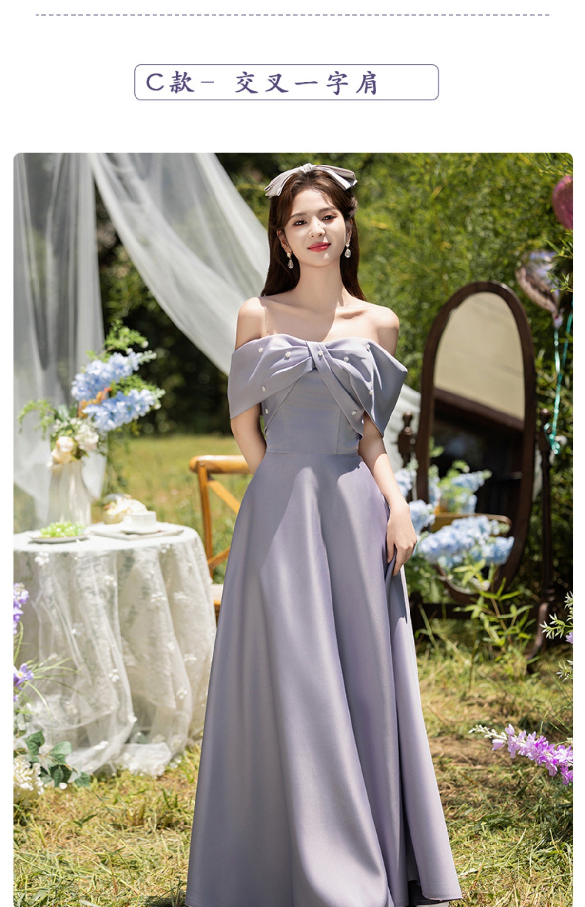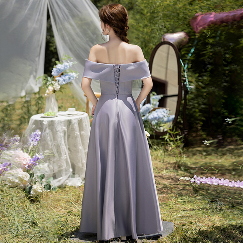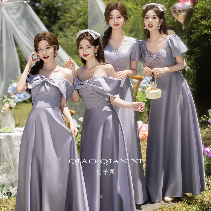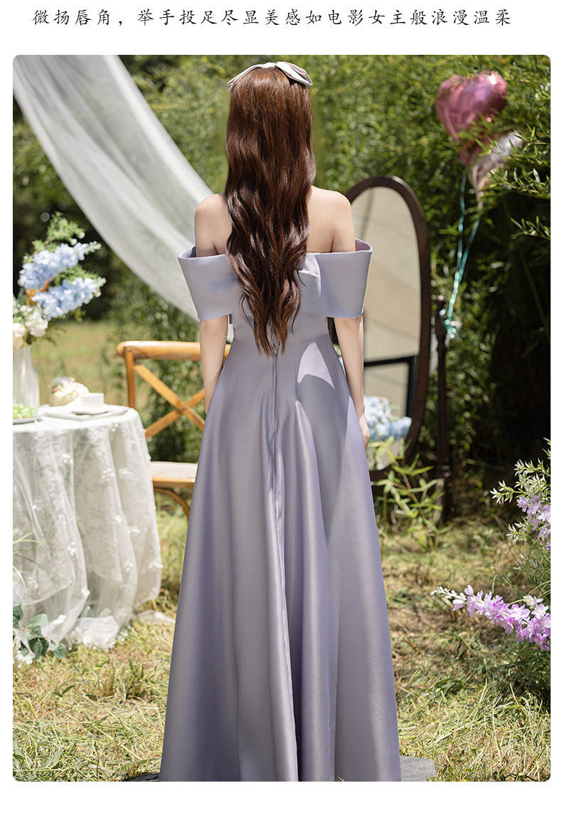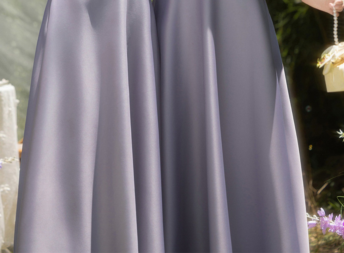 Фиолетовое атласное платье для подружки невесты 2025: новая коллекция осень-зима, элитное, простое, повседневное, нишевое, для женщин.