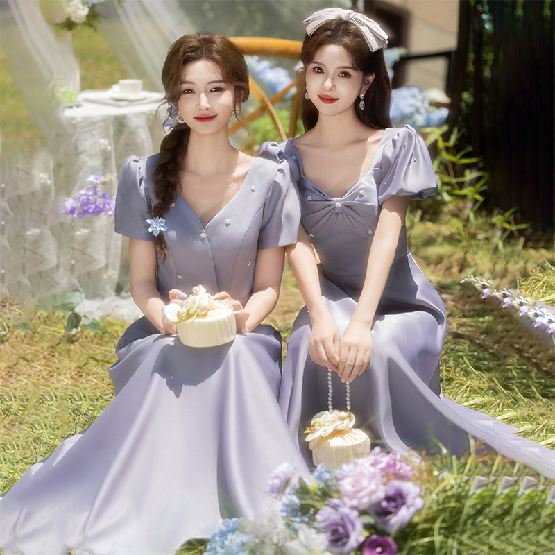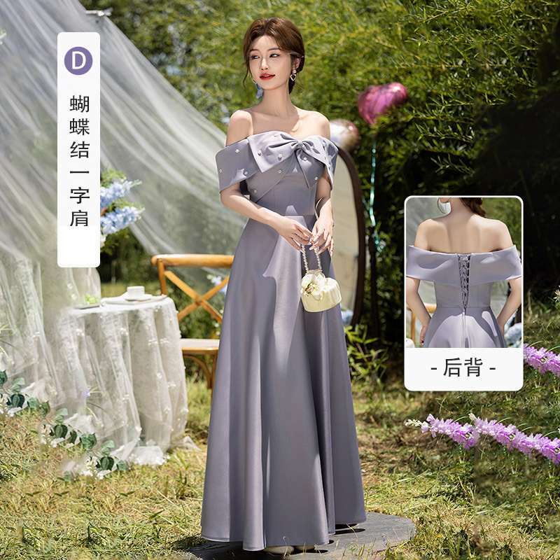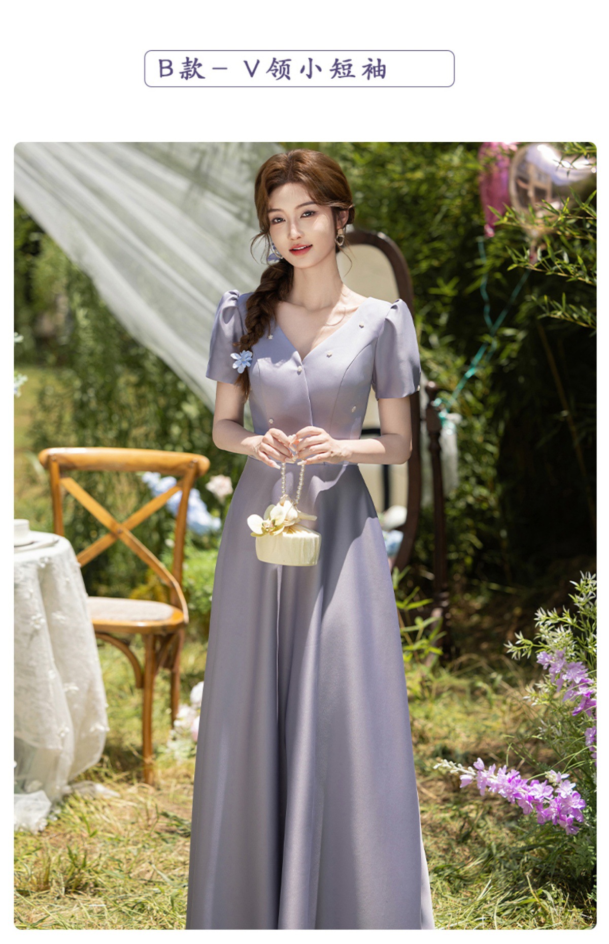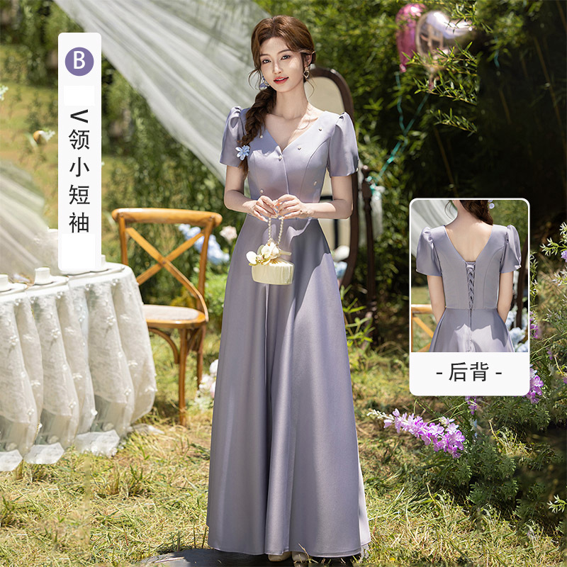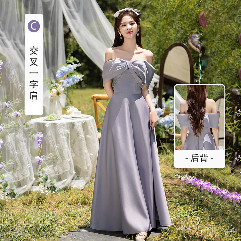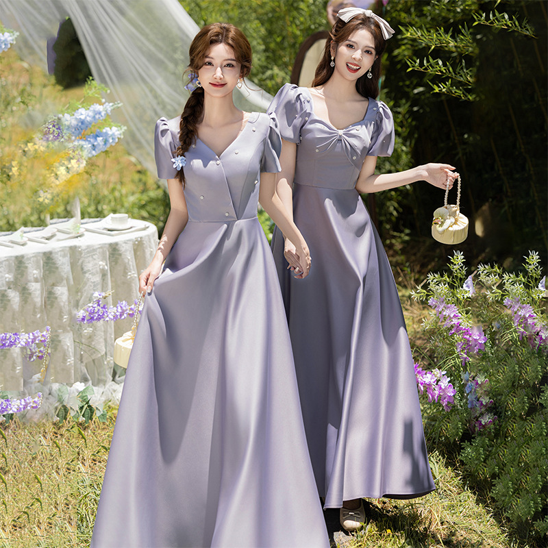 Фиолетовое атласное платье для подружки невесты 2025: новая коллекция осень-зима, элитное, простое, повседневное, нишевое, для женщин.