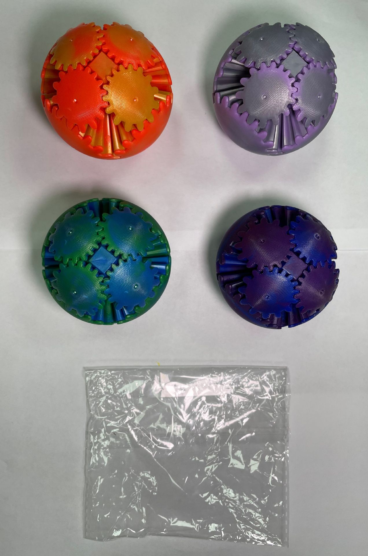 Сумка-шестерня вращающаяся шарик [синий и красный] диаметр 6,5см; Вращающийся шарик-сумка [серый порошок] диаметром 6,5 см.; Сумка-шестерня вращающаяся шариковая [сине-зеленая] диаметром 6,5см.; Сумка-шестерня вращающаяся шариковая [желто-оранжевая] диаметром 6,5см.; Сумка-шестерня вращающаяся квадратная [синяя и красная] диаметр 5,1см; Сумка-шестерня вращающаяся квадратная [сине-зеленая] диаметром 5,1см.; Вращающийся шарик в коробке [синий и красный] диаметром 6,5 см.; Вращающийся шарик с шестерней в коробке [серый порошок] Диаметр 6,5 см; Вращающийся шарик в шестеренке [сине-зеленый] диаметром 6,5 см.; Вращающийся шарик с шестерней в коробке [желтый оранжевый] Диаметр 6,5 см