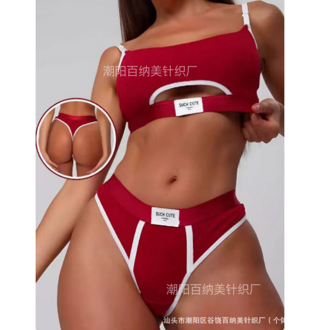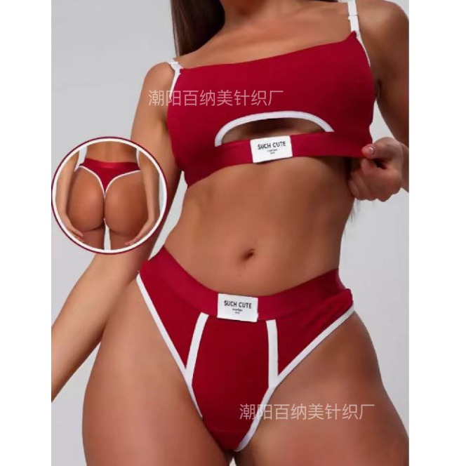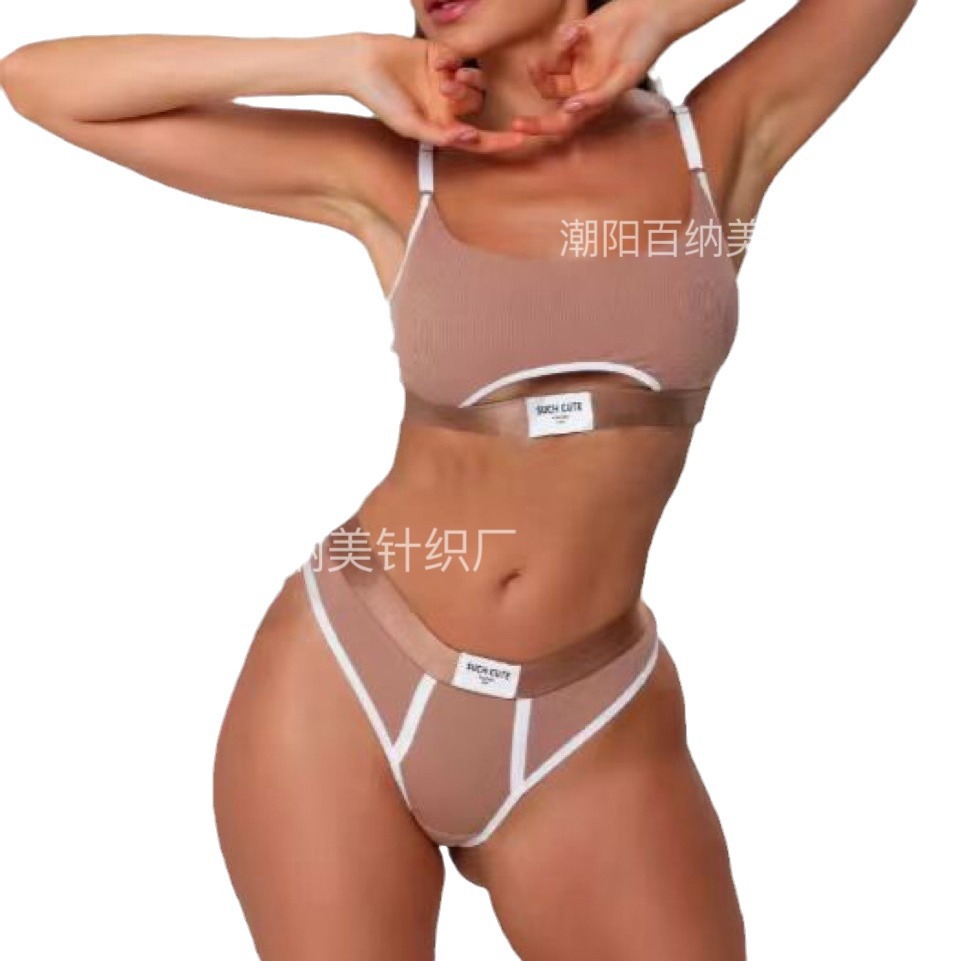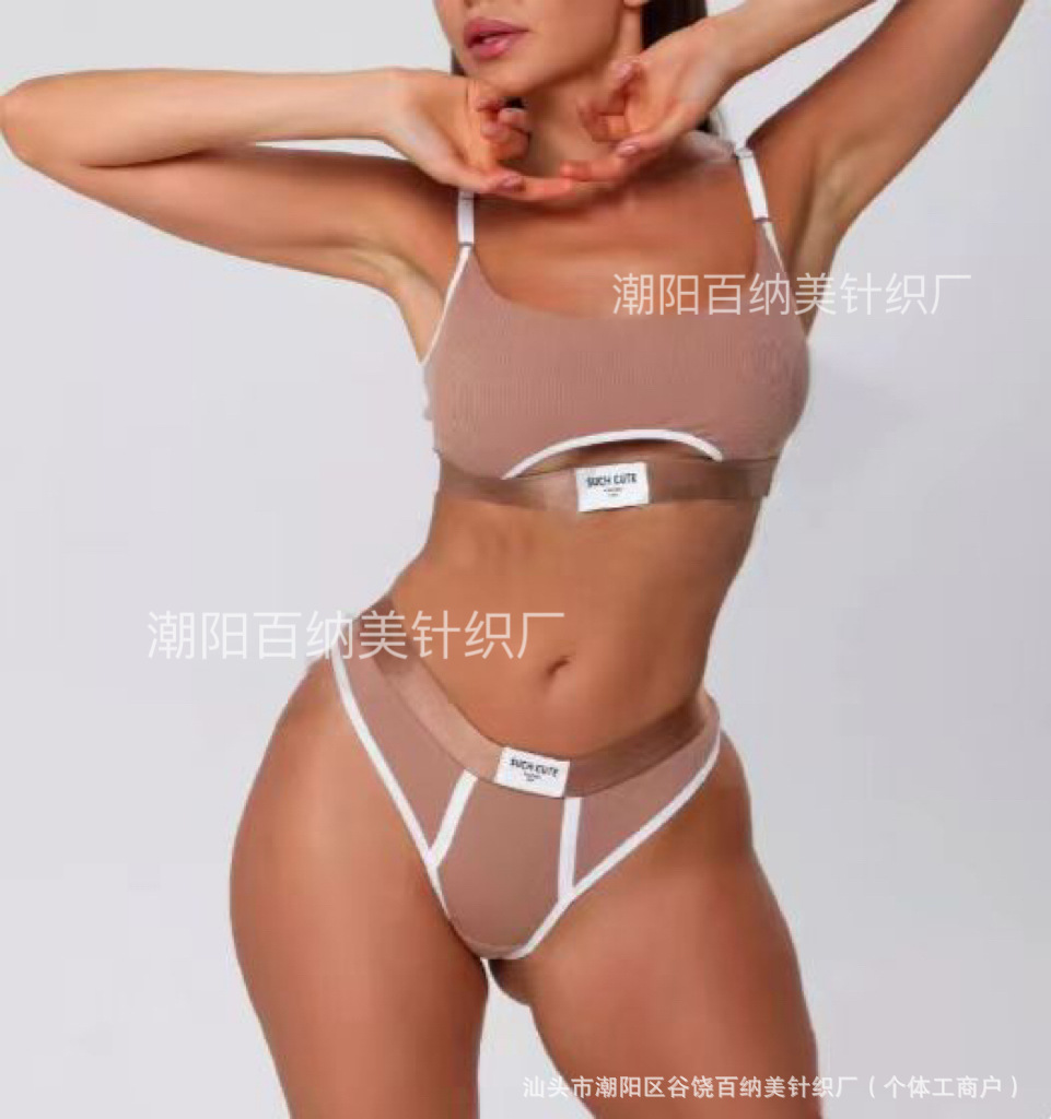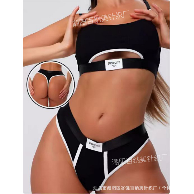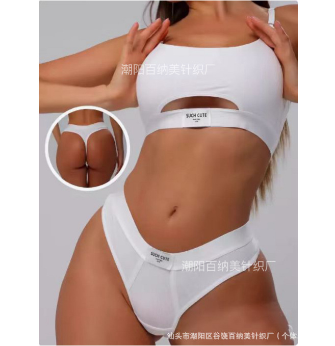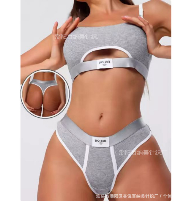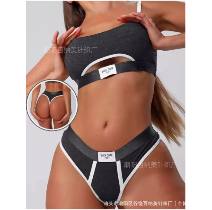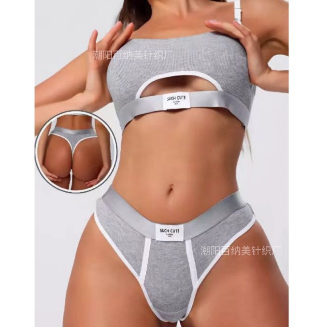 Спортивный комплект белья: сексуальные стринги и спортивный бюстгальтер, фитнес, йога, амортизирующий, модный, универсальный, контрастный цвет.
