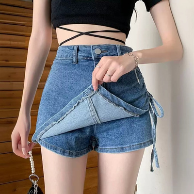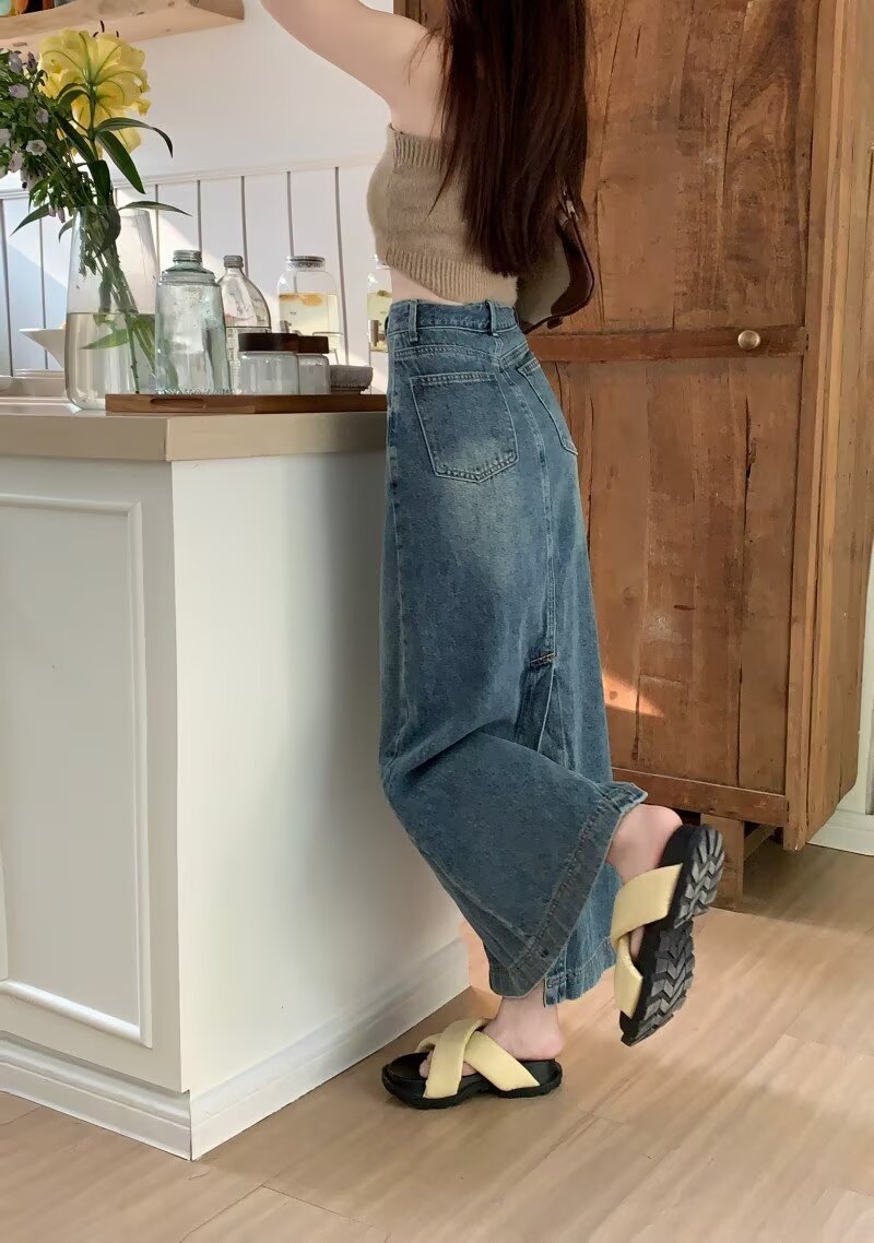 复古大码高腰开叉牛仔半身裙女春秋新款显瘦流苏设计感A字中长裙