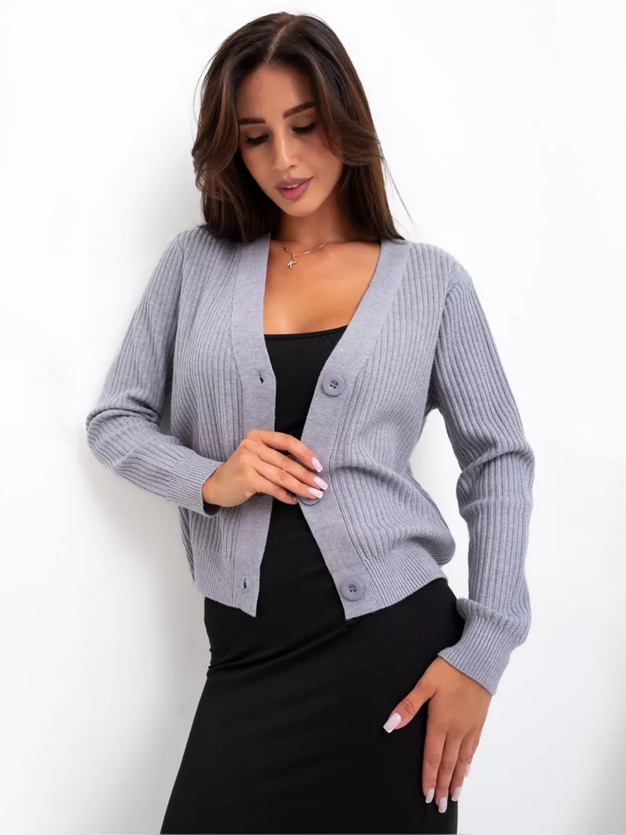 Европейская и американская женская одежда AliExpress Amazon Женская V-образная яма-полоска свитер с пряжкой кардиган вязаный повседневный женский топ