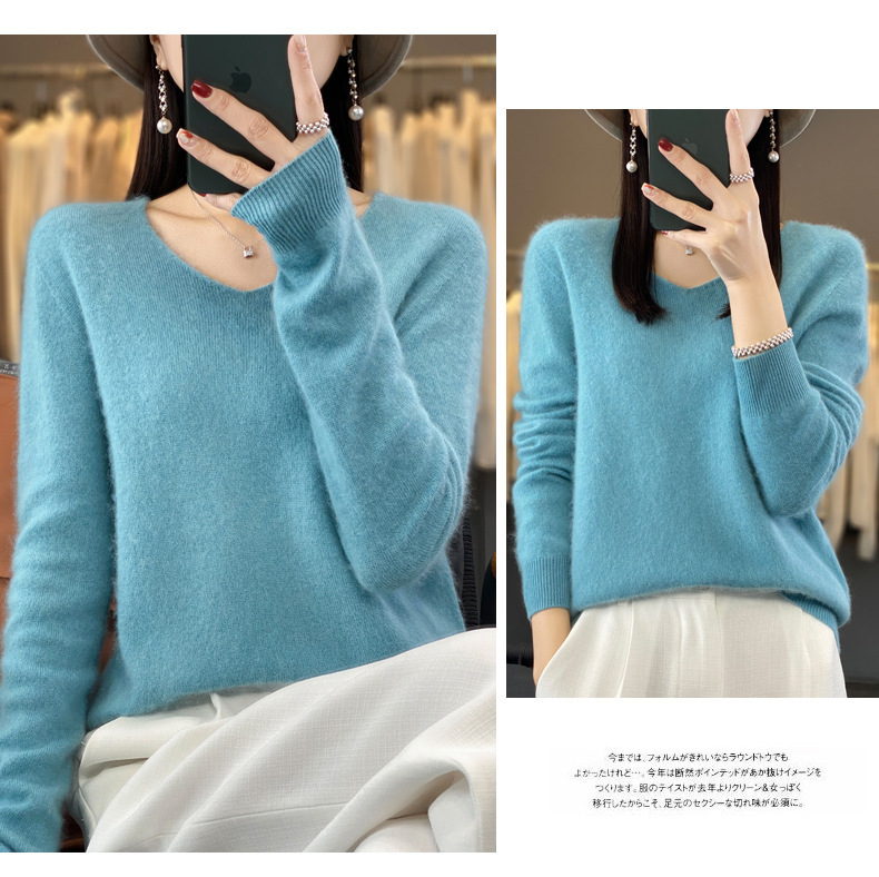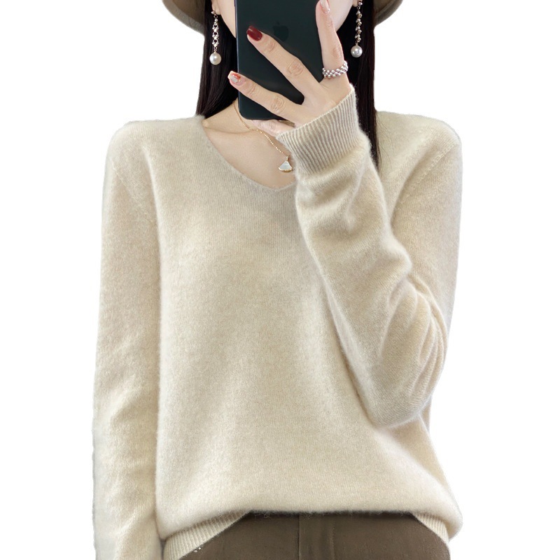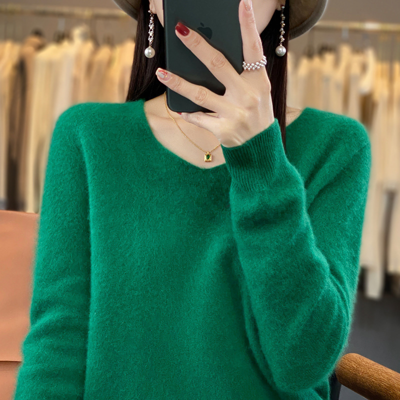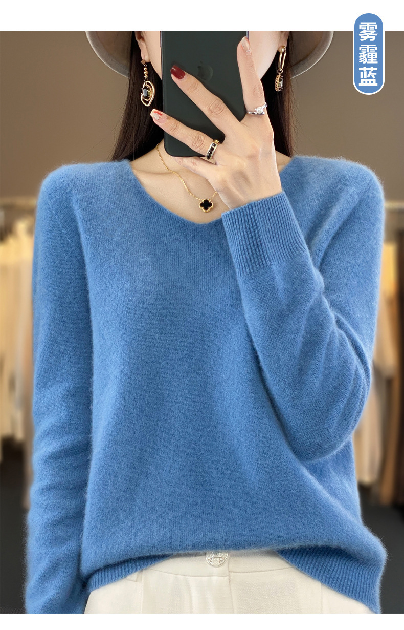 V-образным вырезом пуловатый свитер нижняя рубашка сплошной цвет теплая осень