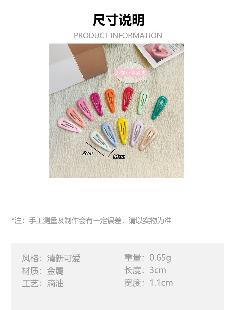 Макарон цветной BB зажим для детей Взрослые капельки воды Заколки для волос для капель масла свежий цвет конфеты челка клип 3CM