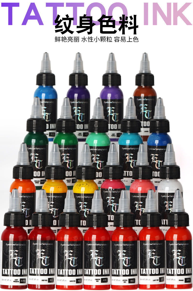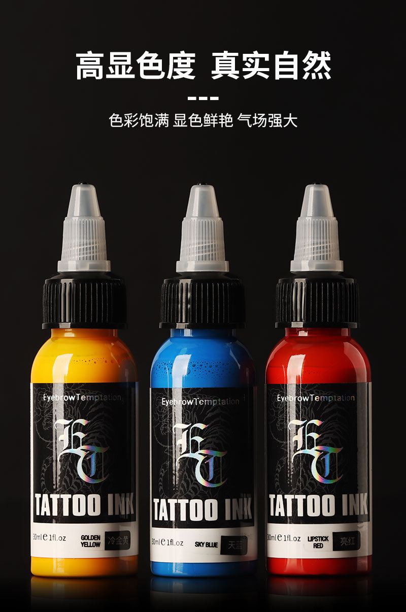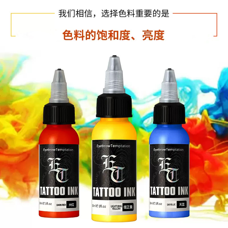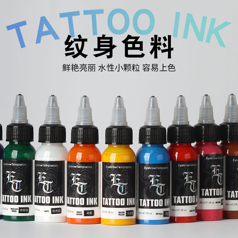 Чернила для татуировок ET, маленькая бутылочка, цветные чернила, пигмент для тату, легко наносятся, яркие цвета, черный, оригинальный набор.