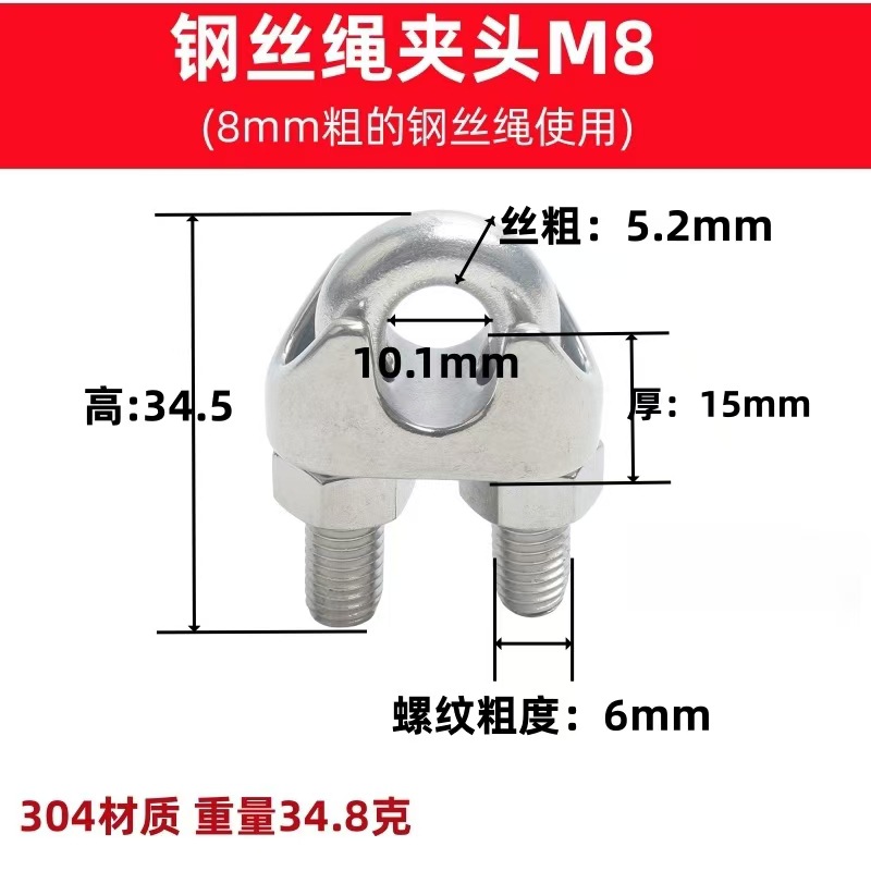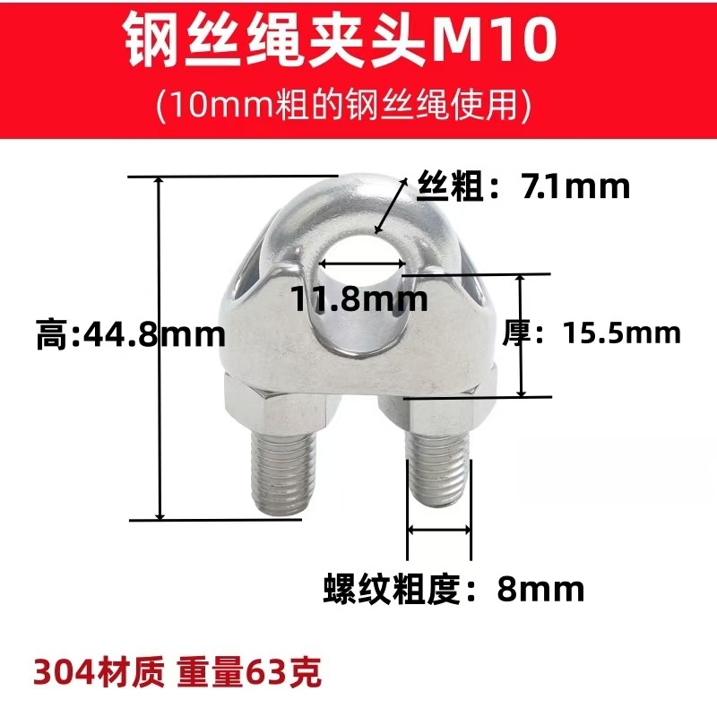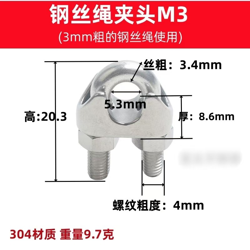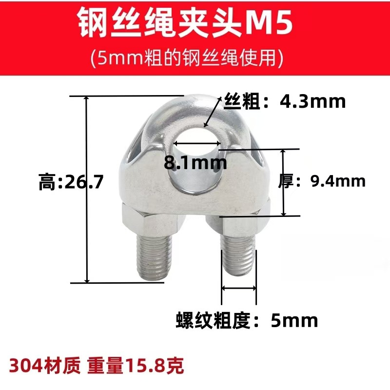 Оцинкованный стальной трос, сверхмощный зажим, пряжка, зажим для веревки, фиксированный зажим из нержавеющей стали, самоблокирующийся