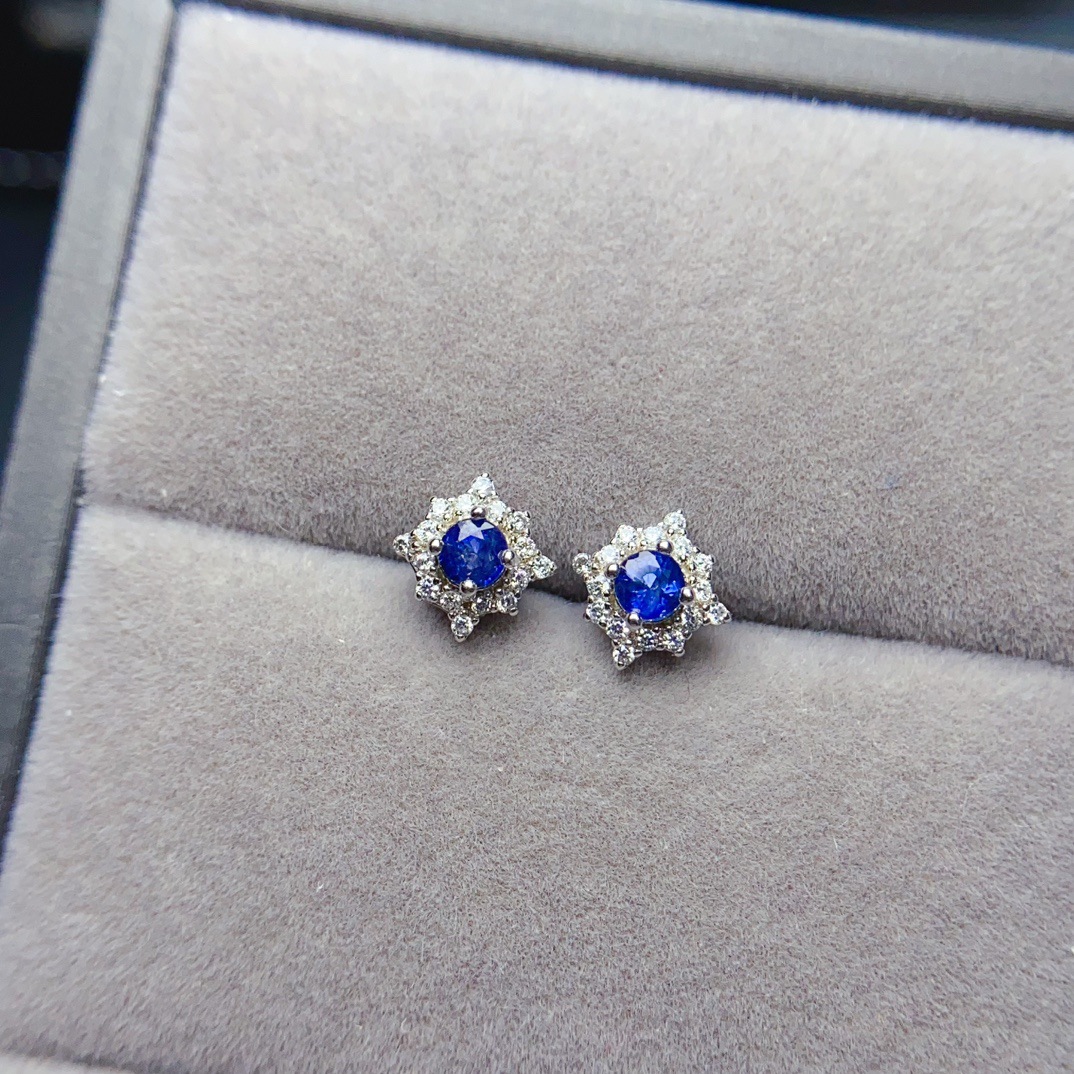 Серьги из натурального сапфира S925, инкрустированные серебром, основной камень 3*3