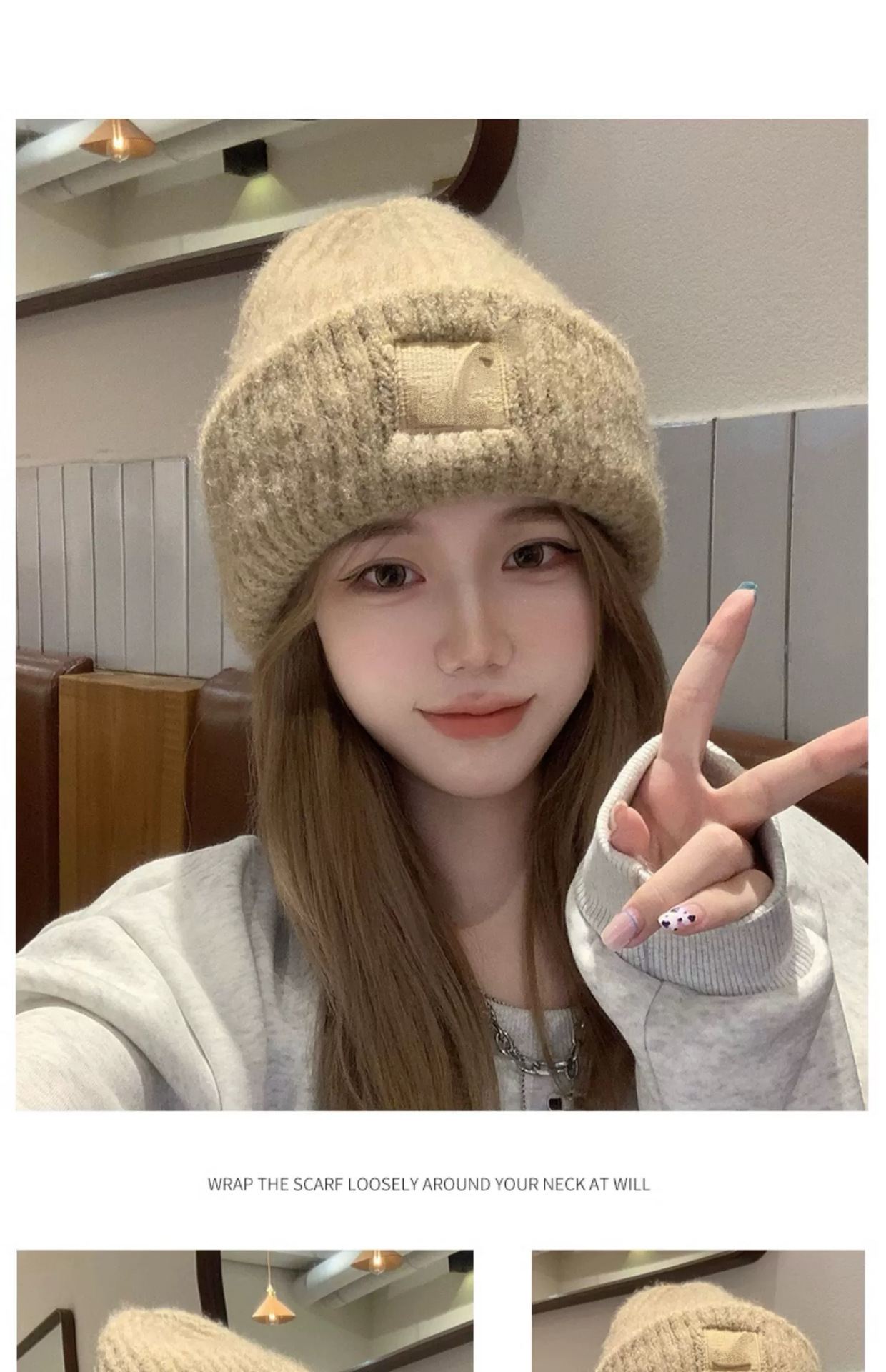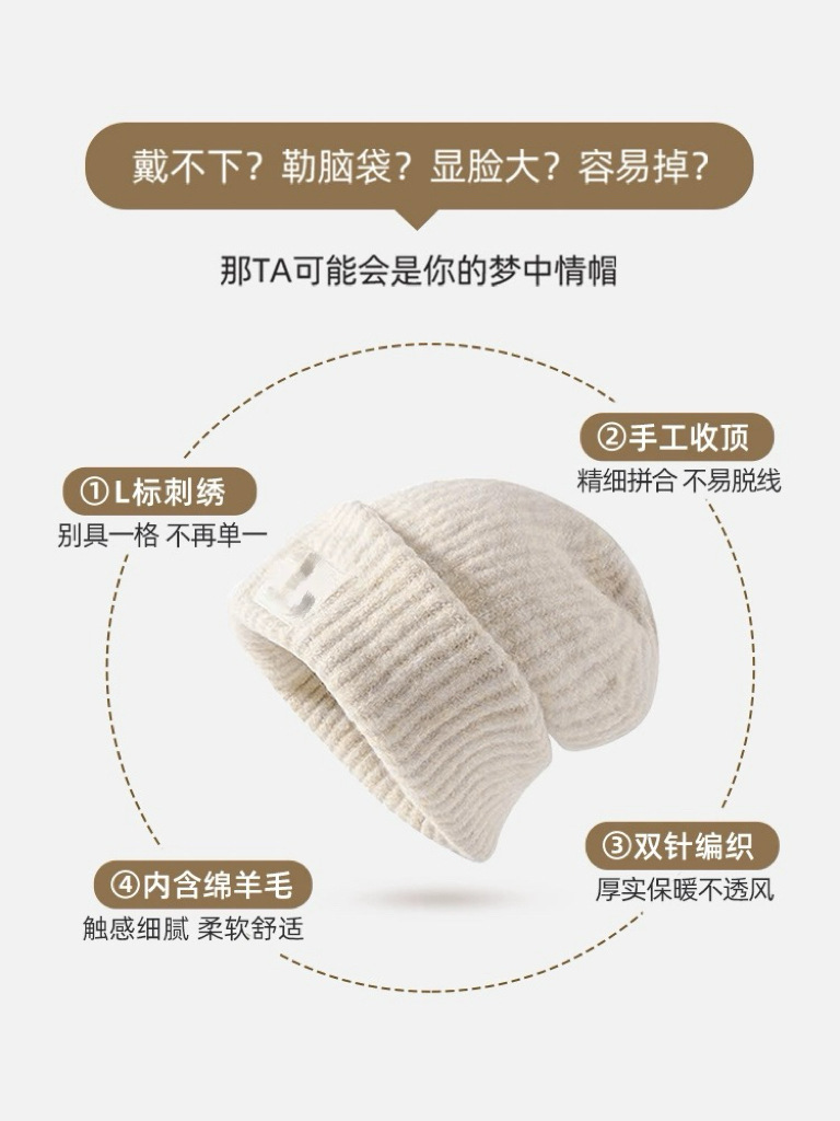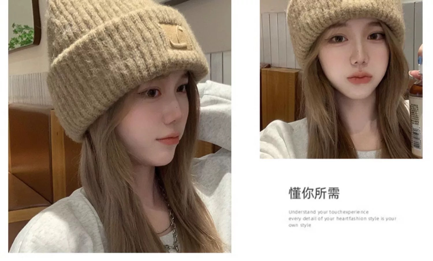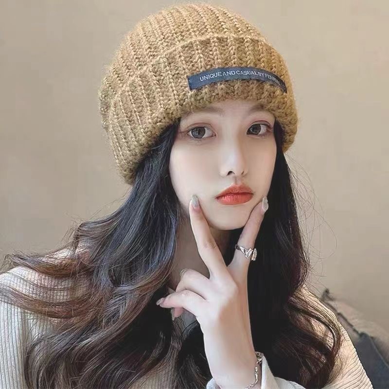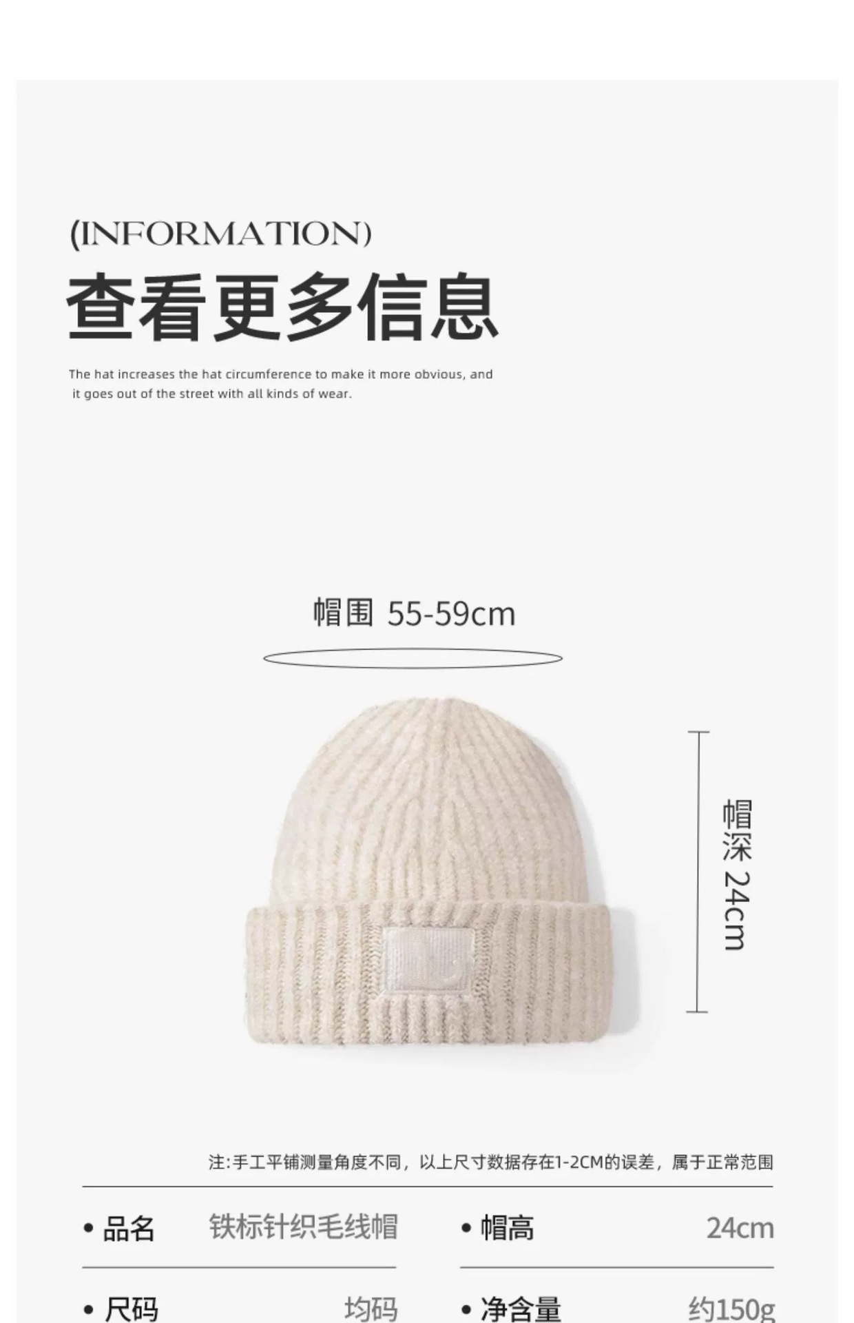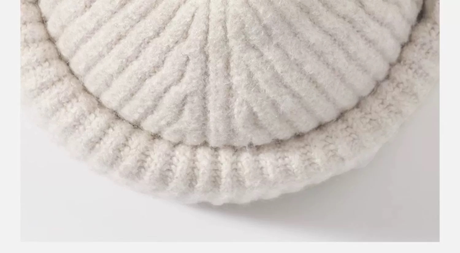 Вязаная шапка-бини крупной вязки для осени и зимы, свободного кроя, теплая, с широким краем, вязаная шапка-бини свободного покроя, уменьшает лицо, трикотажная.