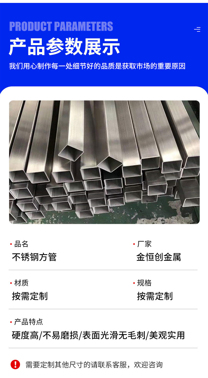 Jinhengchuang 316 304 нержавеющая сталь износостойкая полая квадратная труба лазерная резка бесшовная сварка полировка и шлифовка