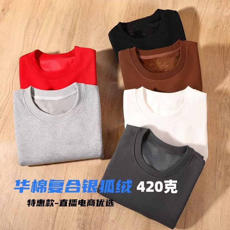 Хит продаж для прямых трансляций: толстовка с круглым вырезом из флиса и хлопка с начесом (420 г), осенне-зимняя, из вельвета «серебристая лиса»