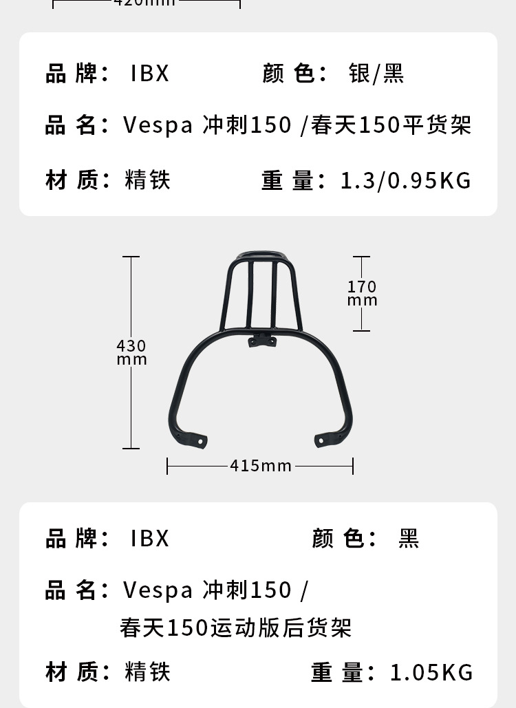 Черная передняя полка (при размещении заказа сообщите в службу поддержки модель); Передняя полка серебристого цвета (при размещении заказа сообщите в службу поддержки модель); Черная плоская полка (при размещении заказа сообщите в службу поддержки модель); Плоская полка серебристого цвета (при размещении заказа уточните модель в службе поддержки клиентов); Черная задняя стойка с открытой спинкой (при размещении заказа сообщите в службу поддержки клиентов модель); Серебристая задняя полка с открытой спинкой (при размещении заказа сообщите в службу поддержки клиентов модель); Черная спортивная полка (при заказе уточняйте модель в службе поддержки клиентов); Черная задняя полка со спинкой (при заказе уточните у службы поддержки модель); Серебристая задняя полка со спинкой (модель с примечанием); Серебристый бампер (модель с примечанием) можно заказать в других цветах, обратившись в службу поддержки клиентов.; Лобовое стекло Sprint mini (доступны четыре цвета, обратите внимание на цвет при заказе); Маленькое лобовое стекло Vespa (в наличии четыре цвета, при заказе укажите цвет модели); Среднее лобовое стекло Vespa (в наличии четыре цвета, при заказе уточняйте цвет модели); Большое лобовое стекло Vespa (доступны четыре цвета, при заказе обратите внимание на цвет модели); Веспа черный большой багажник; Квадратная коробка 45 литров.; Квадратная коробка 57 литров.; Быстросъемная большая сумка на хвосте объемом 29,5 л с черным крокодиловым узором; Высококачественная белая однотонная быстросъемная большая сумка на хвосте объемом 29,5 л.; Быстросъемная большая сумка на хвосте высокого класса светло-коричневого цвета объемом 29,5 л.; Высококачественная белая быстросъемная сумка на хвосте серии GD, 29,5 л.