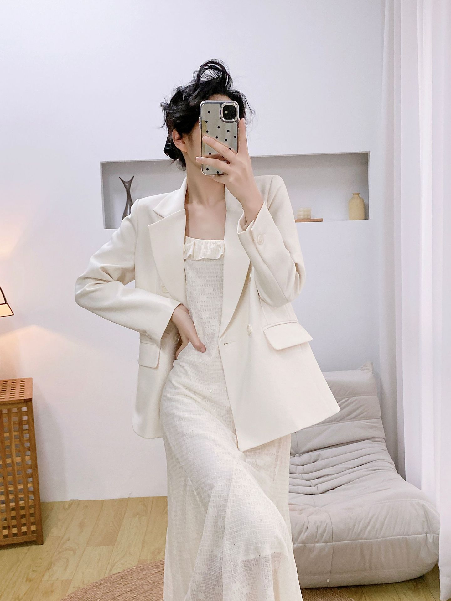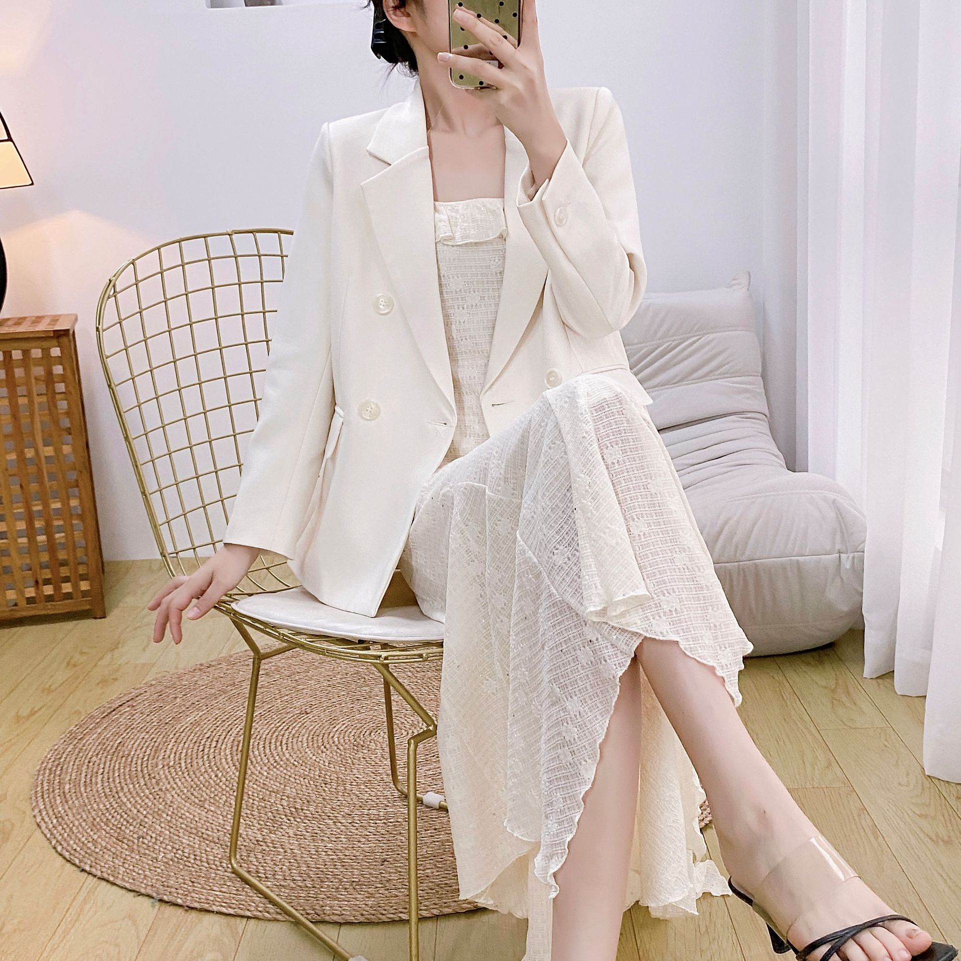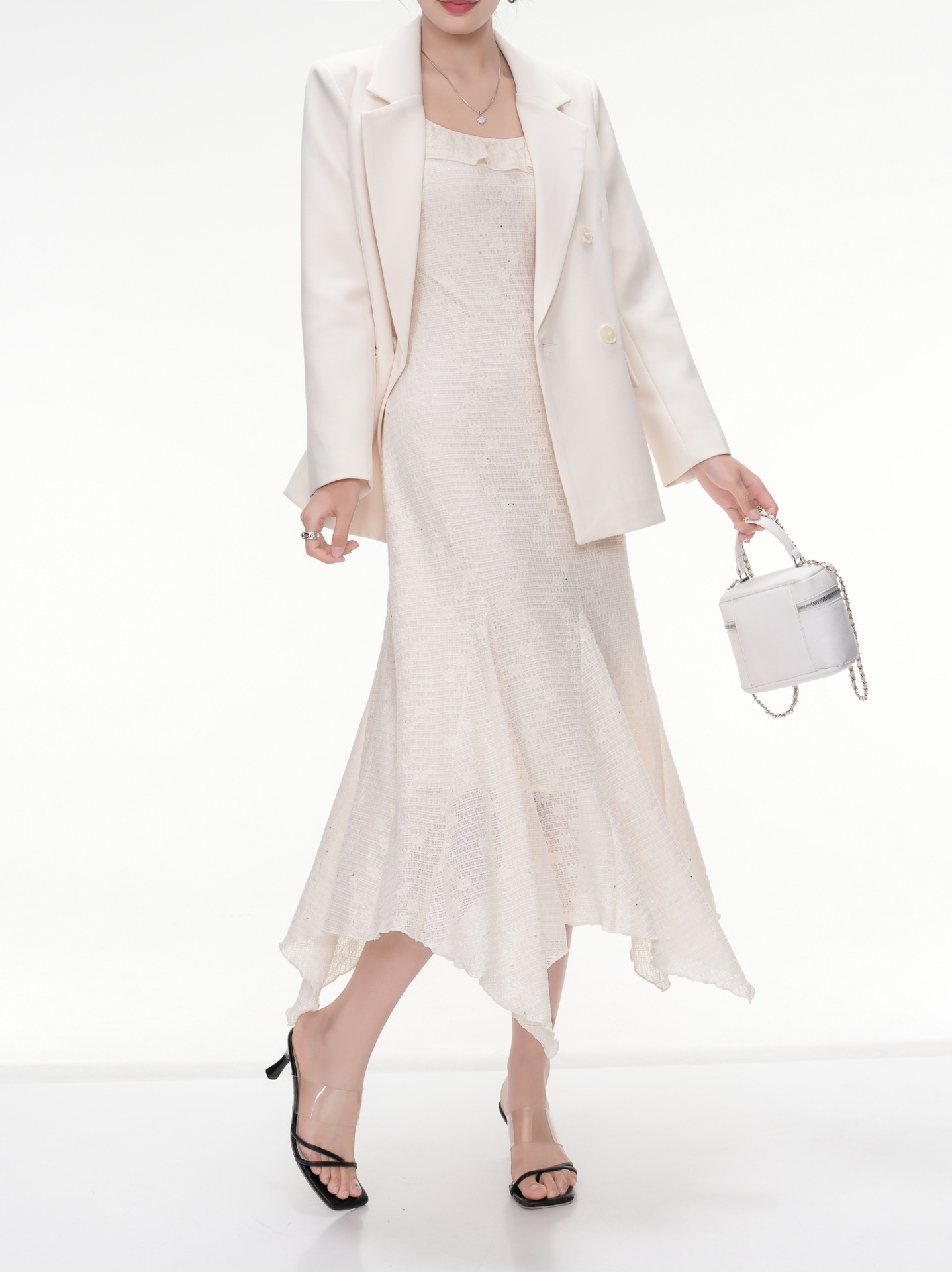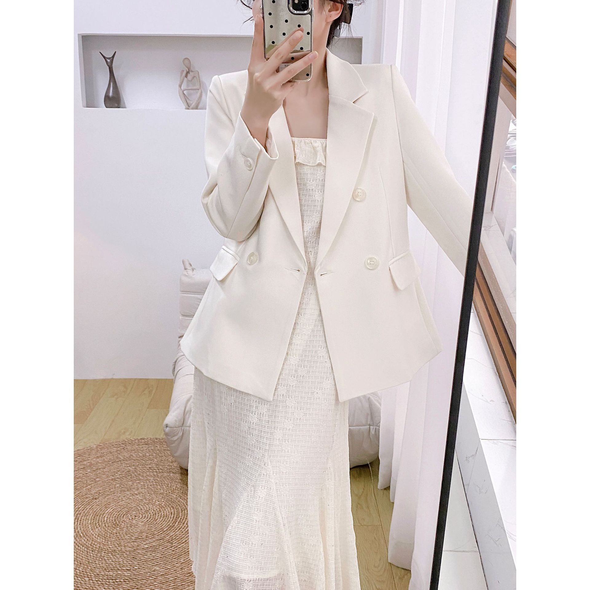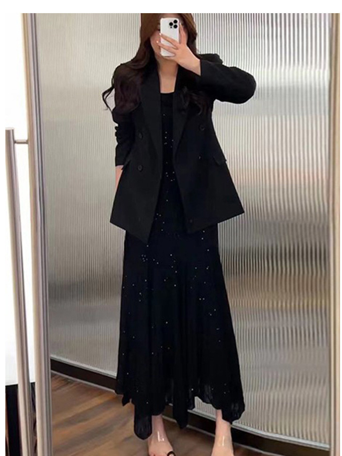 Черный комплект из двух предметов (+8053); Комплект из двух предметов кремового цвета (+605); одинарная черная юбка; Цельная кремово-белая юбка