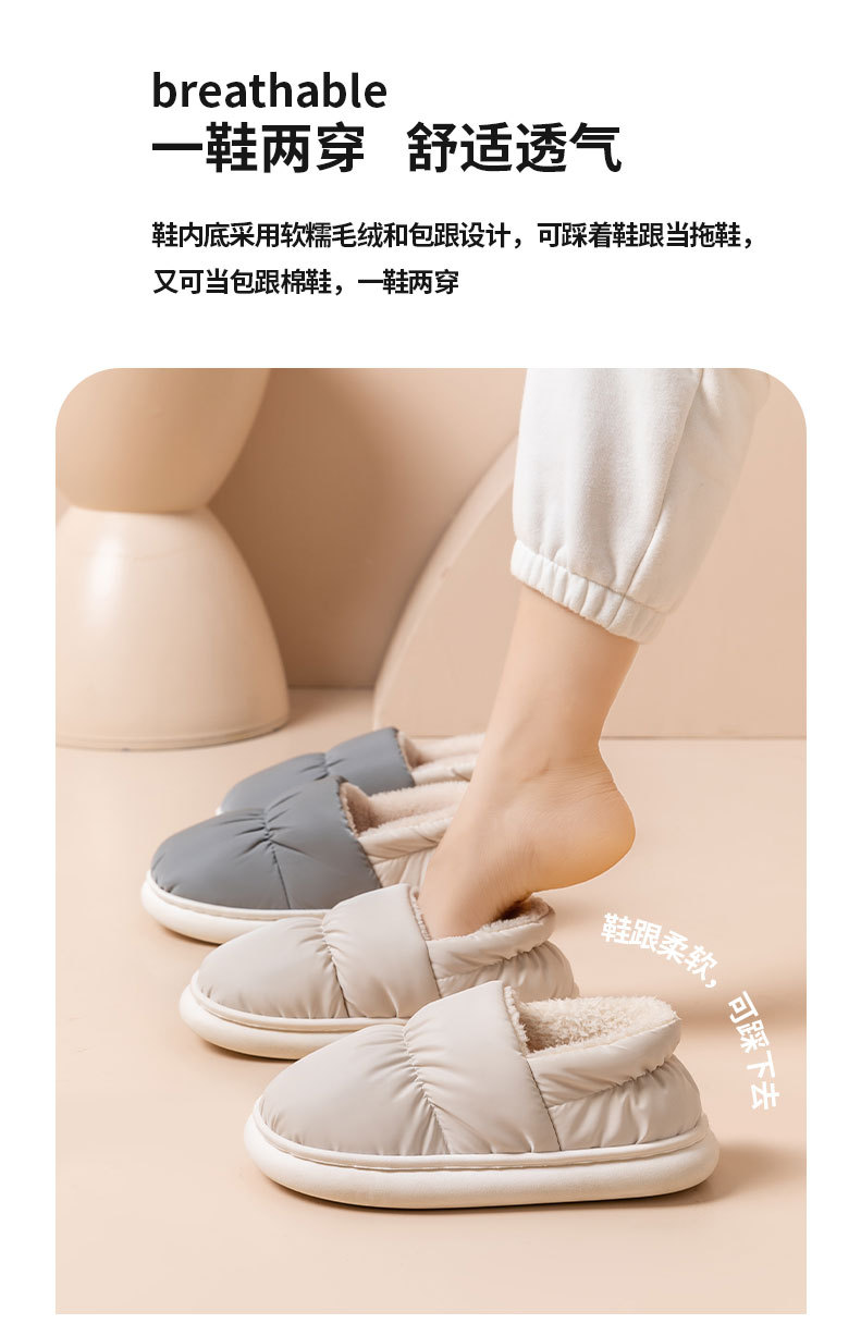Зимние хлопковые тапочки, домашние тапочки, женская утепленная обувь из дышащей пуховой ткани, теплая хлопковая обувь на нескользящем каблуке, мужская обувь оптом