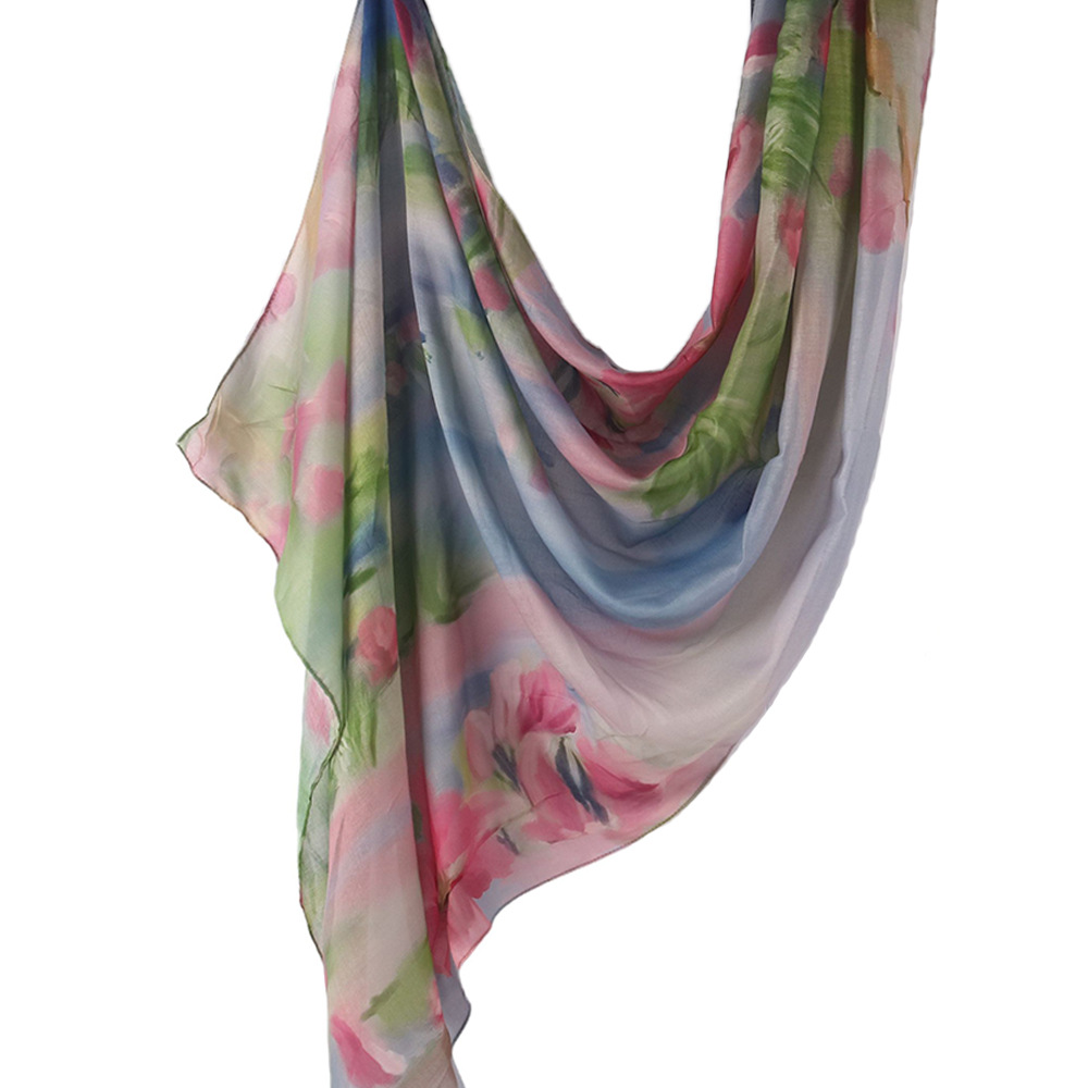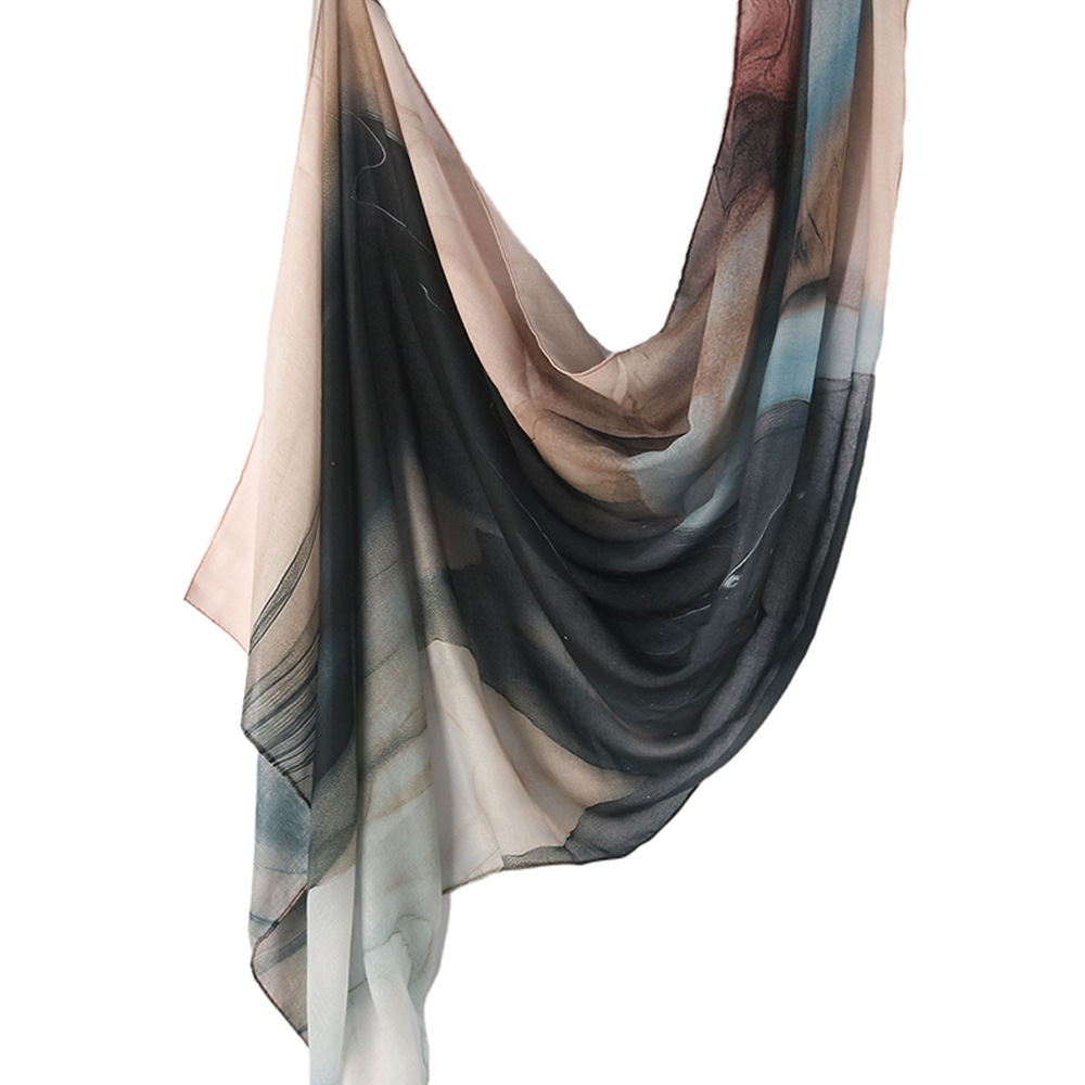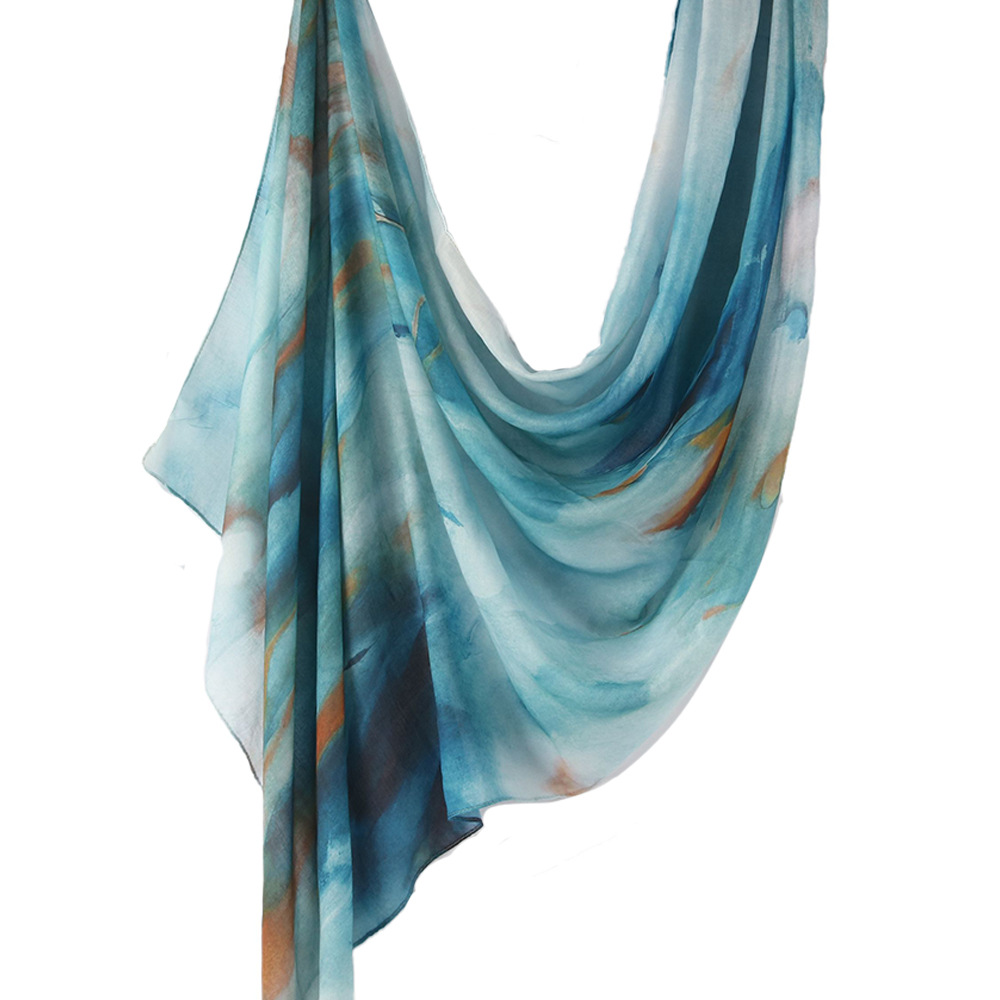 Трансграничные горячие продажи акварельной серии из модельского хлопка атласный шарф с принтом национальный платок женский платок