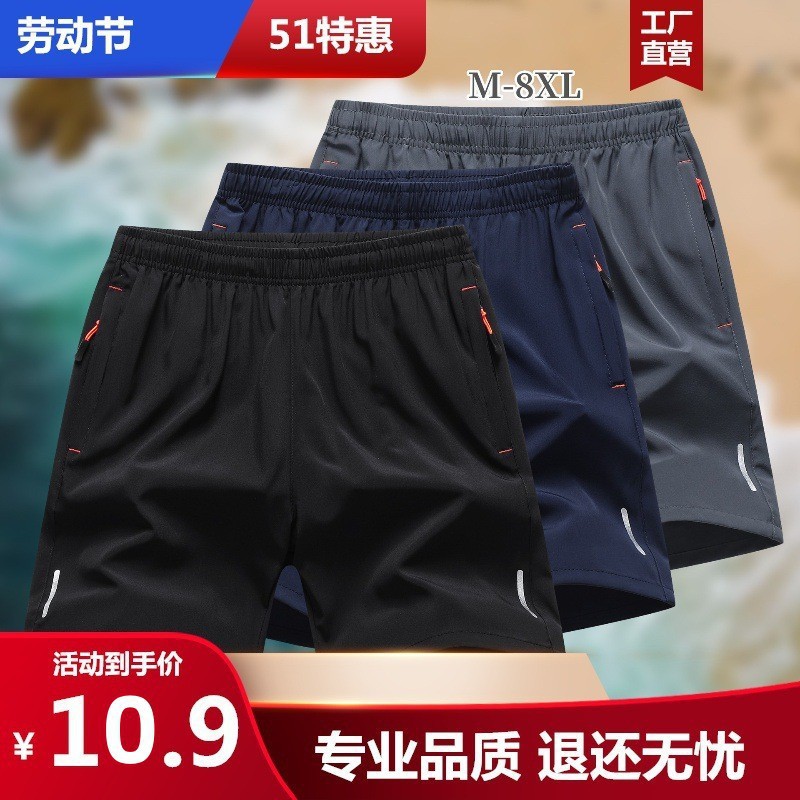 Укороченные брюки из ледяной шелк мужские летние тонкие повседневные быстрорежитые свободные большие размеры молнии карманы спортивные фитнес-шорты мужские
