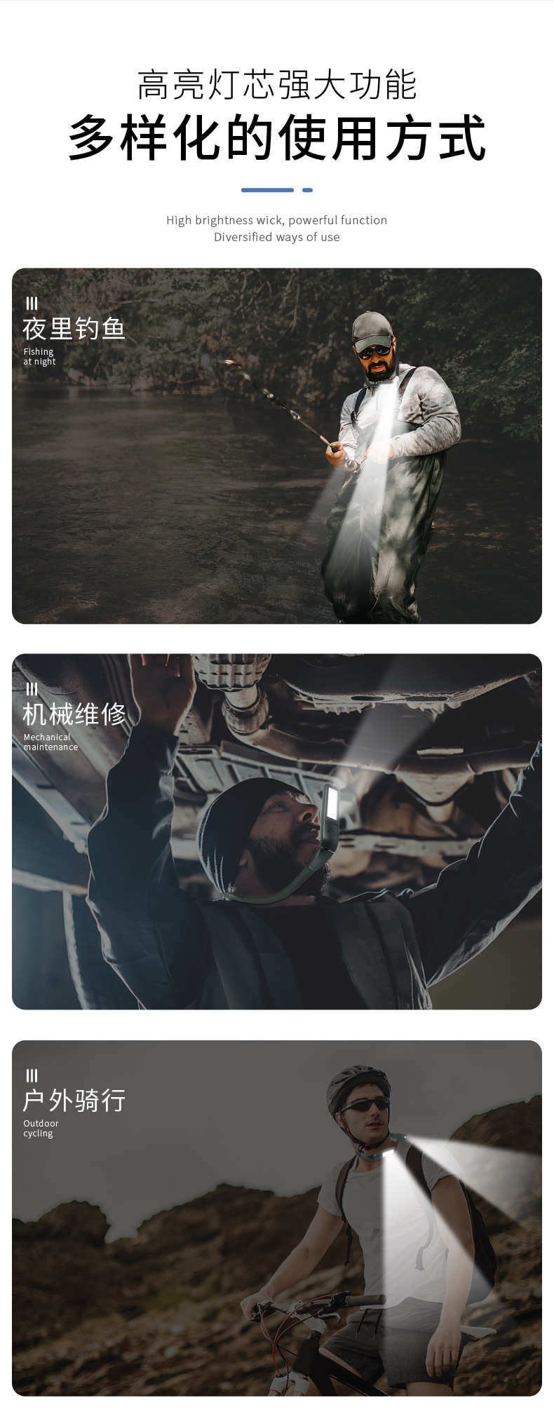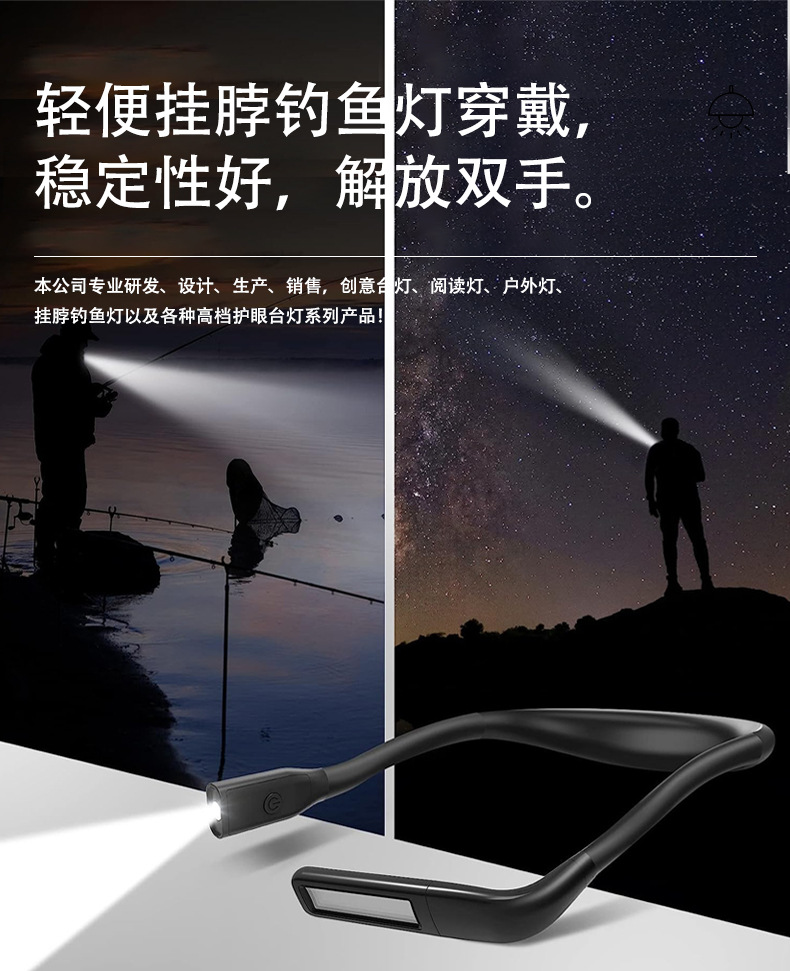 我们专注为跨境电商及外贸企业研发生产跨境爆款灯具,产品涵盖挂脖阅读灯、露营氛围灯、钓鱼灯、USB折叠灯及挂脖放大镜灯等品类。提供样品定制、OEM/ODM服务,默认采用英文中性包装。特别说明:若为国内自用或转售需求,请联系我们更换中文标识包装,我们将优先响应。欢迎咨询合作!