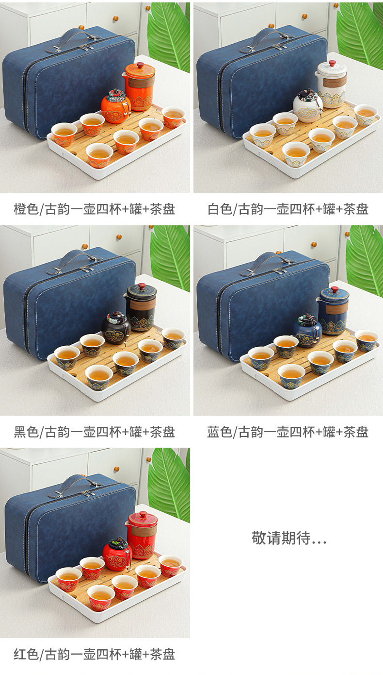Белый древний римм, шесть чашек в одном горшке + чайник + чайный поднос + чемодан; Синий древний римм, шесть чашек в одном горшке + чайный баночка + чайный поднос + чемодан; Красный древний римм, шесть чашек в одном горшке + чайный баночка + чайный поднос + чемодан; Черный древний римм, шесть чашек в одном горшке + чайный баночка + чайный поднос + чемодан; Оранжевый древний римм, шесть чашек в одном горшке + чайный баночка + чайный поднос + чемодан