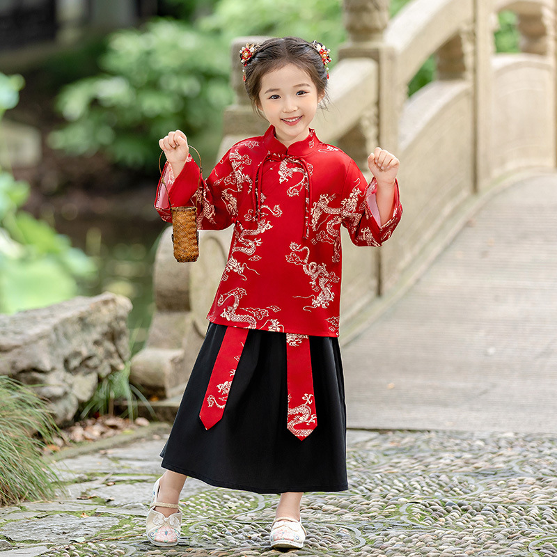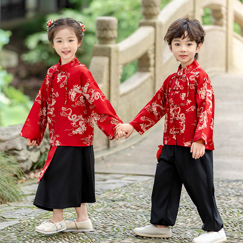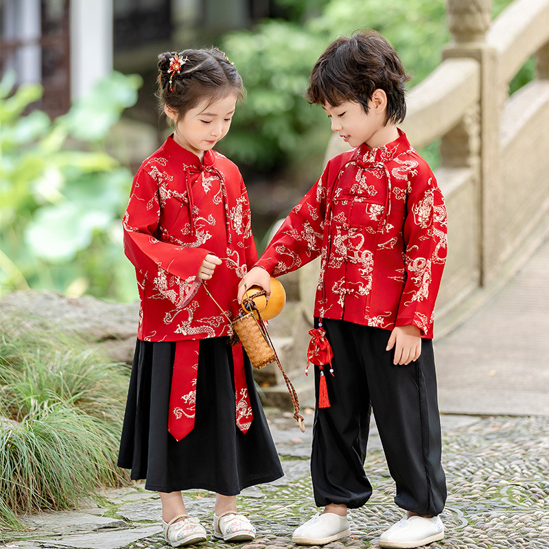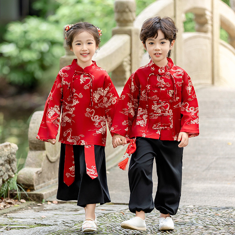 Детский костюм Hanfu Мальчик Костюм Девочка Танская Весенняя Осень Детская Новый Китайский Стиль Детский Сад Середина Середина Середины Осени