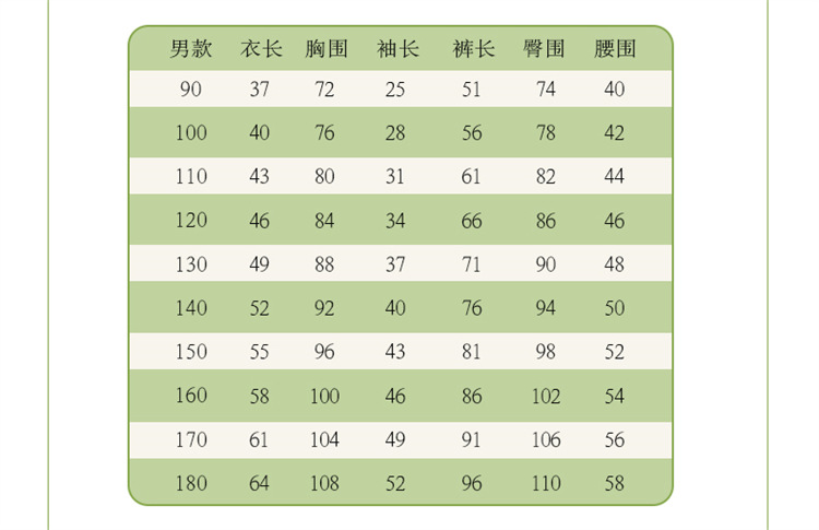 90cm; 100cm; 110cm; 120cm; 130cm; 140cm; 150cm; 160cm; 170cm; 180cm