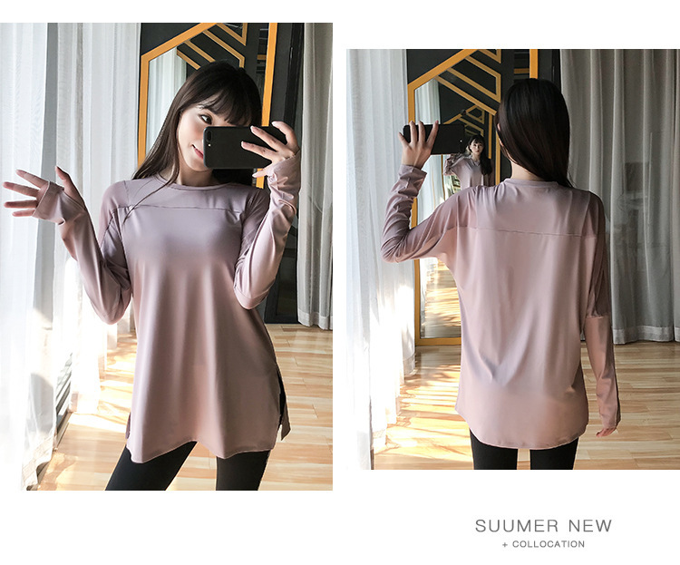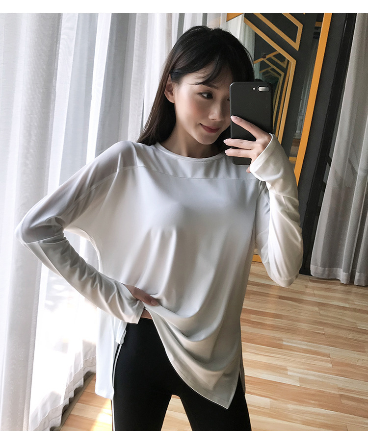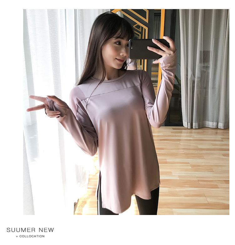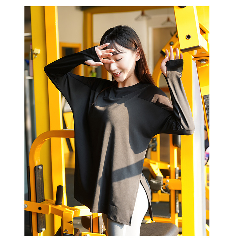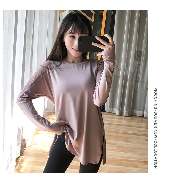 Новая осенняя свободная тонкая одежда для йоги с длинными рукавами спортивная одежда бег топ быстрая сухая спортивная футболка для женщин