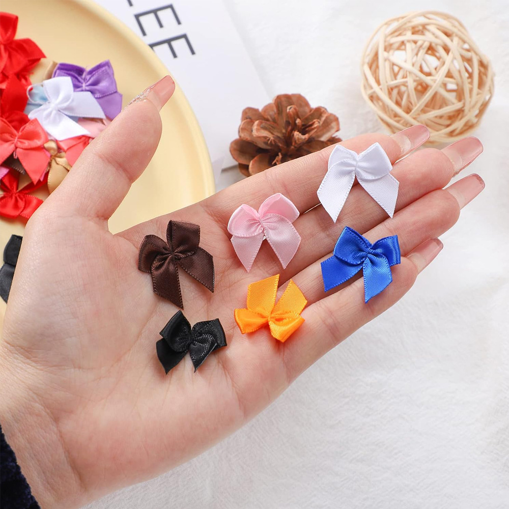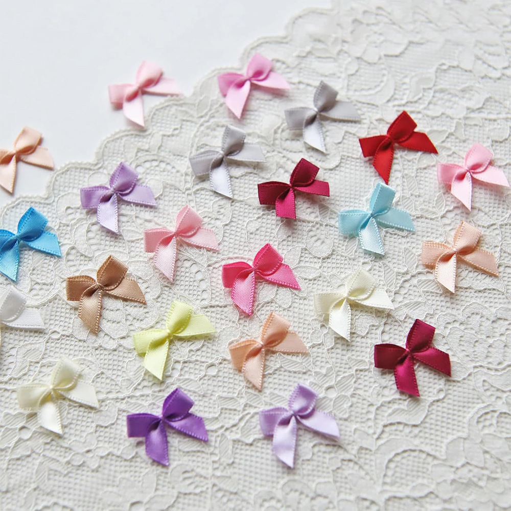 Оптовая продажа, в наличии: бантики-узелки 1 см на проволочной основе, маленькие цветочные элементы для нижнего белья, аксессуары для одежды, украшения для рукоделия, 3-точечные бантики.