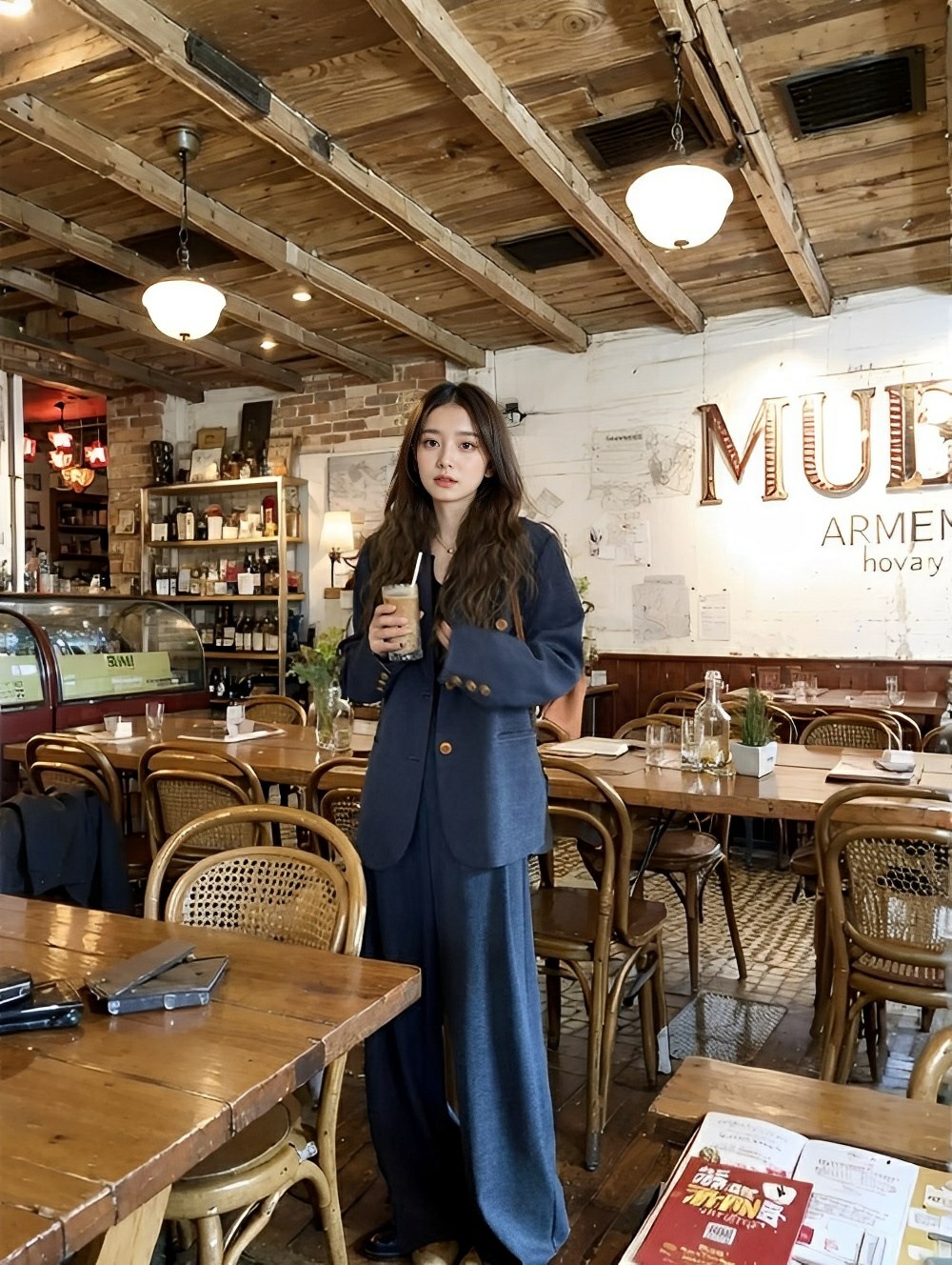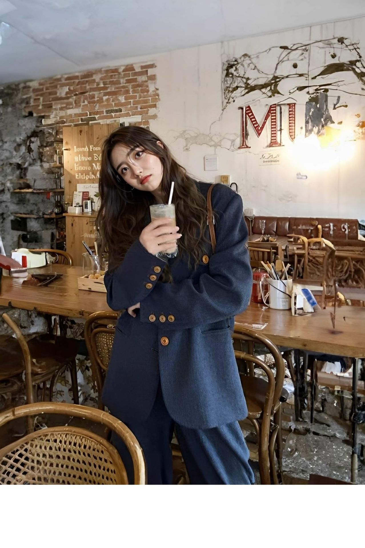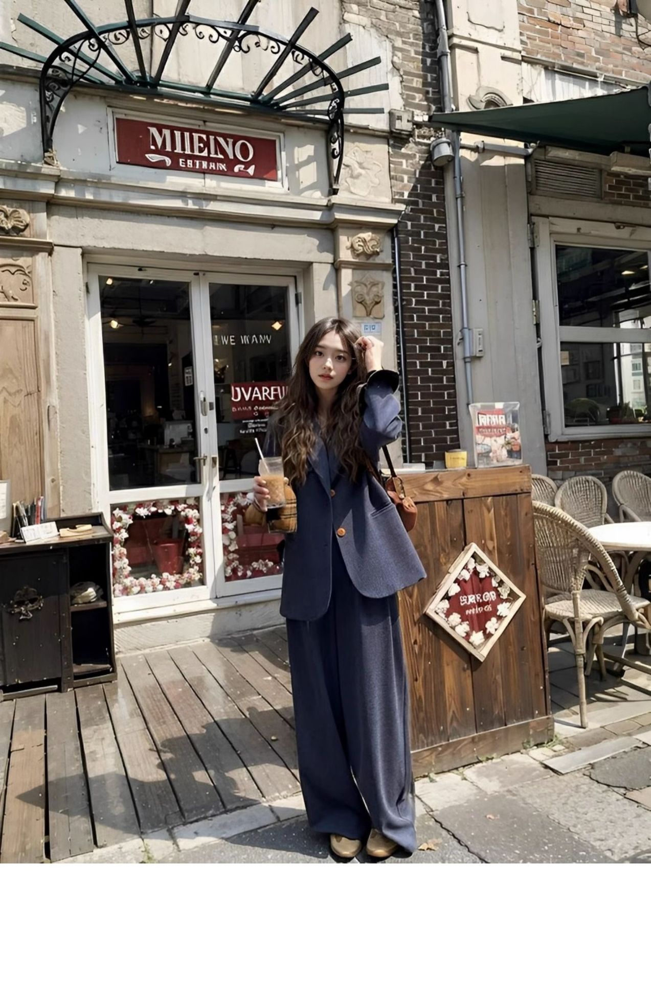 2025 новый весенне-осенний костюм, модный костюм в стиле старых денег, широкие брюки, костюм-двойка [6637]