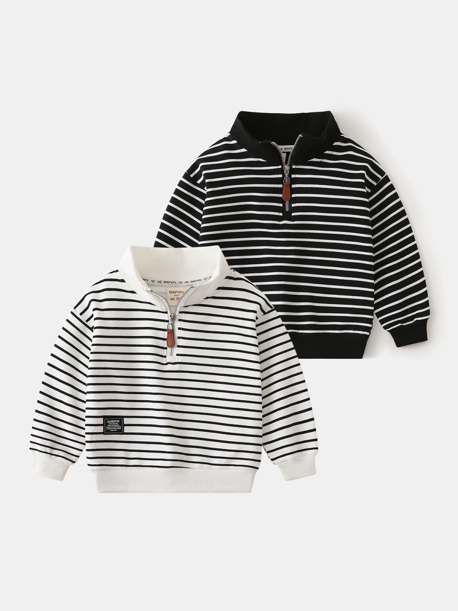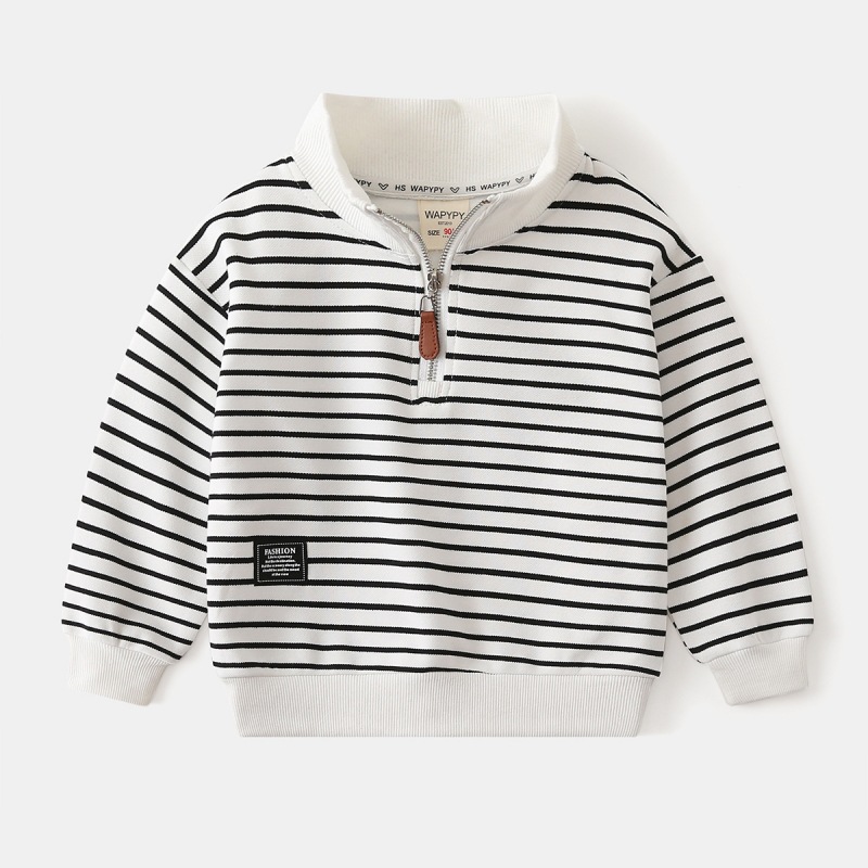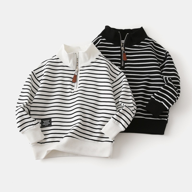 Детская полосатая воротник свитера корейская детская одежда 2024 осенняя молния для мальчиков