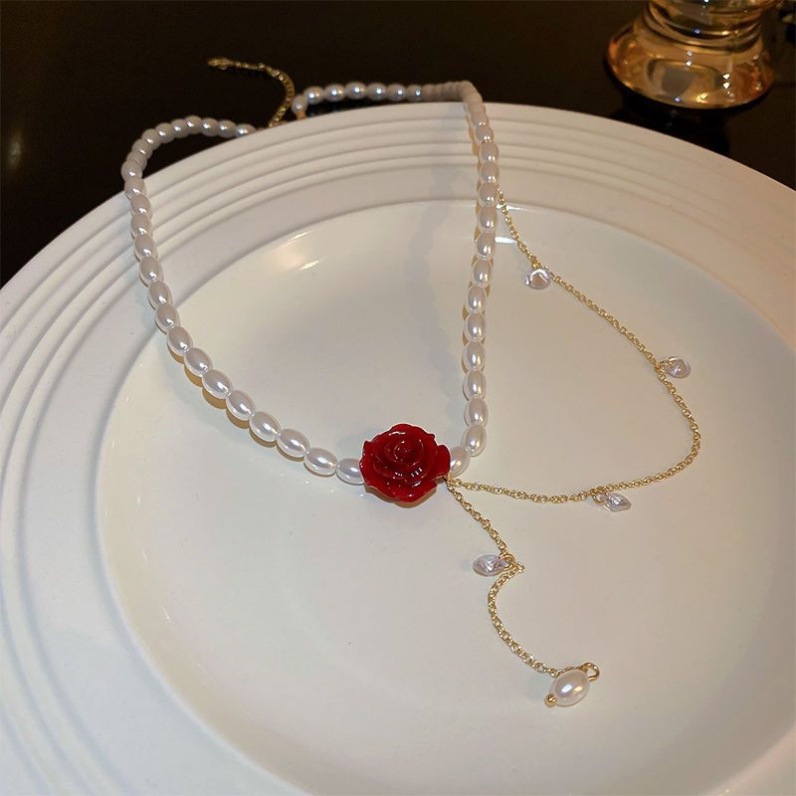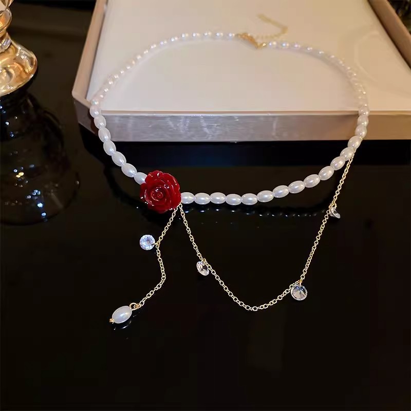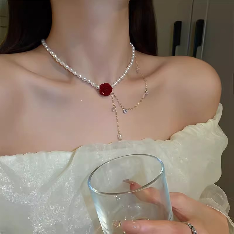Французское темпераментное розовое жемчужное ожерелье легкое роскошное нишевое чувство высокого уровня дизайна