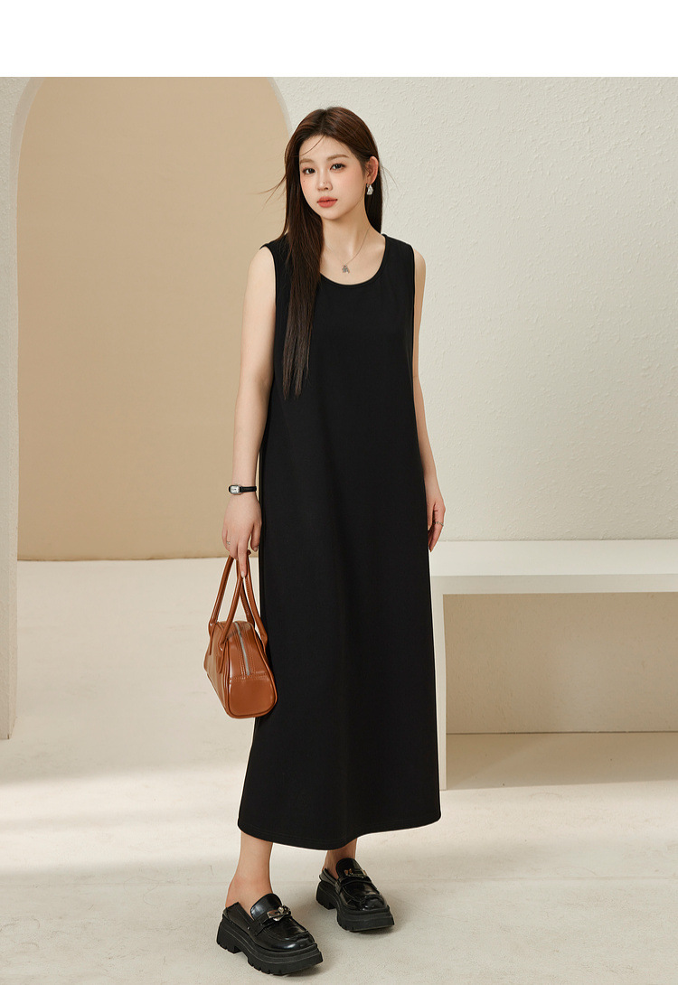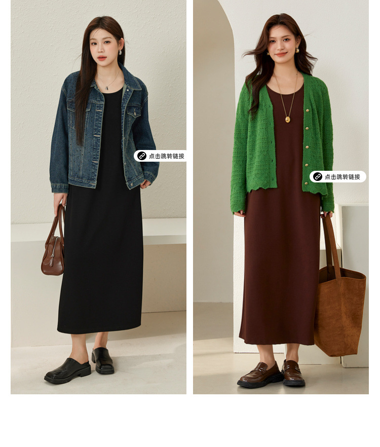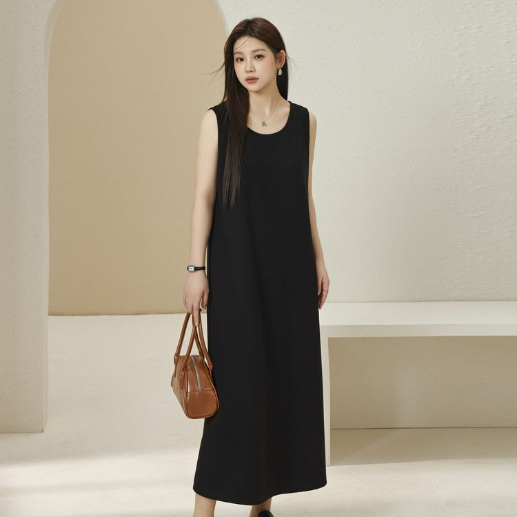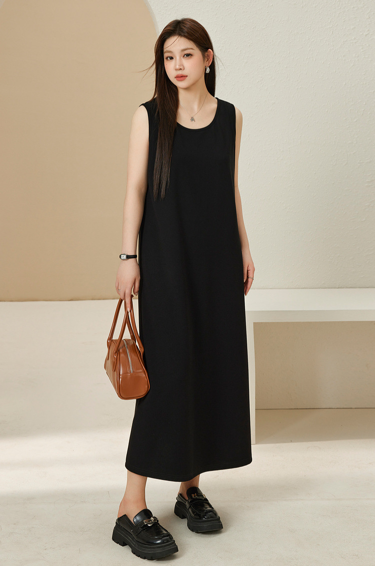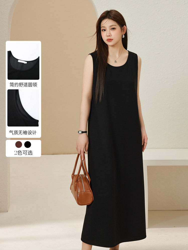 Xianlixiu, простое модное женское платье больших размеров, элегантное непринужденное трикотажное платье без рукавов, толстое мм, осень 2023, новый стиль