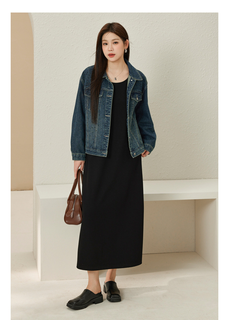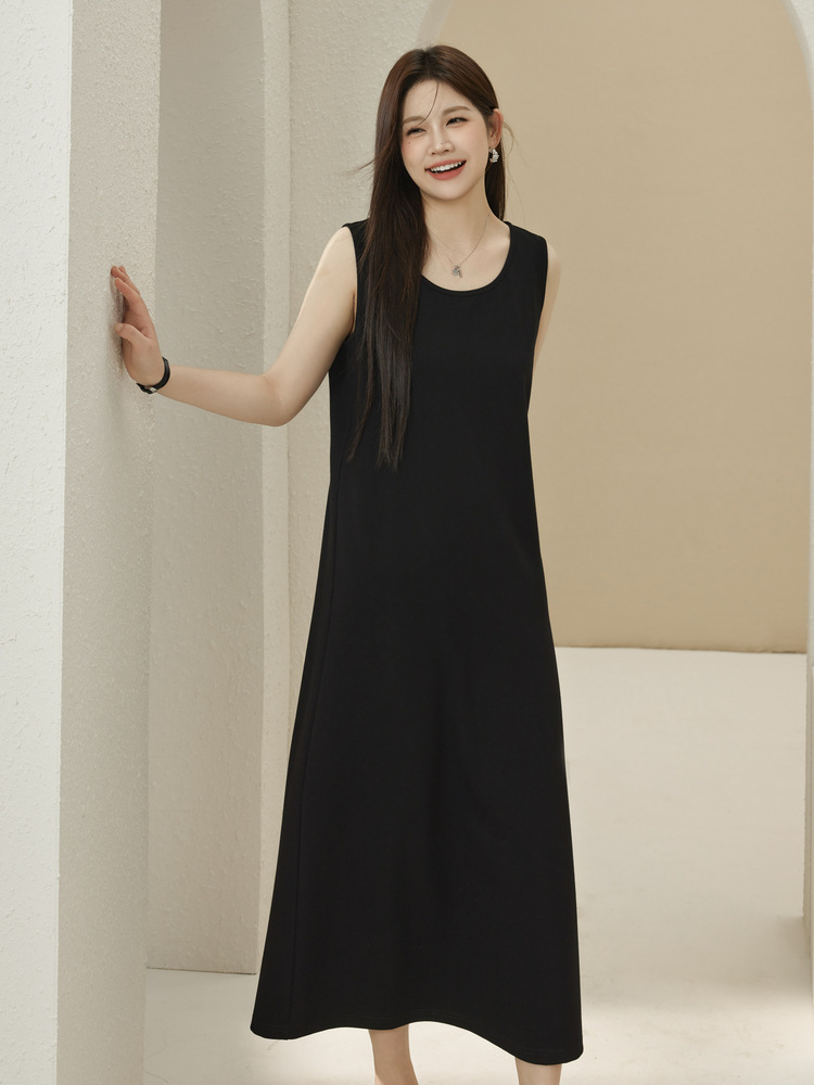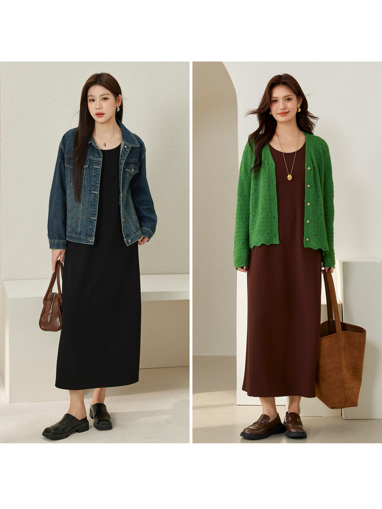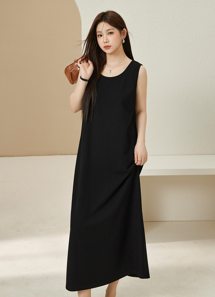 Xianlixiu, простое модное женское платье больших размеров, элегантное непринужденное трикотажное платье без рукавов, толстое мм, осень 2023, новый стиль
